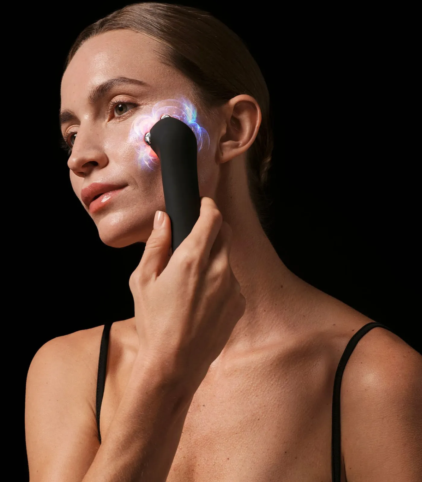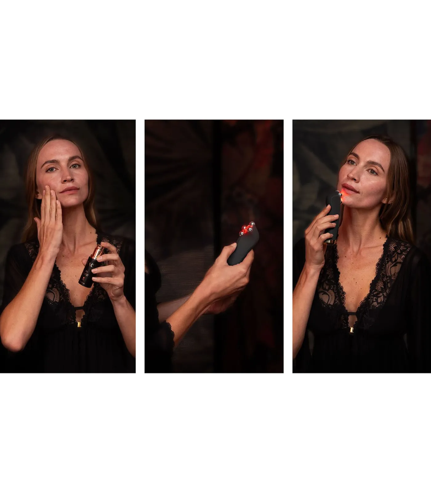 WAAR WETENSCHAP DE HUID ONTMOET’s Werelds eerste anti–aging apparaat met dubbele microcurrent, NIR en rood lichttherapie. FAQ™ 402 gaat verder dan het oppervlak – het herstelt meerdere huidlagen en diepe weefsels terwijl het de spieren eronder versterkt. Het verzacht diepe rimpels en fijne lijntjes, vermindert ouderdomsvlekken, definieert de kaaklijn en bestrijdt langdurige verzakking. Het resultaat? Een huid die er gelift, gecontourd en voller uitziet. Dat klopt. We hebben zojuist de beste verouderings hack gevonden.Lift & contourtDubbele microcurrent stimuleert en versterkt de 69 gezichts– en nekspieren, lift en definieert de jukbeenderen, kin en kaaklijn voor een natuurlijk jeugdige, gecontourde look.Verstevigt & verstevigtNIR en rood LED–licht stimuleren collageen, verstevigen de huid, verzachten fijne lijntjes en verstevigen verzakte gebieden voor een jeugdiger uiterlijk.Egaliseert de huidtint & textuurBlauwe LED richt zich op ouderdomsvlekken, ongelijkmatige textuur en roodheid, verzacht en geneest de huid voor een egalere teint.Brengt huidverzorging dieper inElectroporatie opent de huid voorzichtig om de absorptie van huidverzorging te stimuleren, waardoor de producten sneller en effectiever werken.Versterkt de uitstraling en vermindert wallenT–Sonic™ massage stimuleert microcirculatie en lymfedrainage, versterkt de uitstraling en vermindert wallen.Innovatieve AIAI–aangedreven microcurrent past de intensiteit in real–time aan om de behandeling voor elk gebied van je gezicht te optimaliseren.
