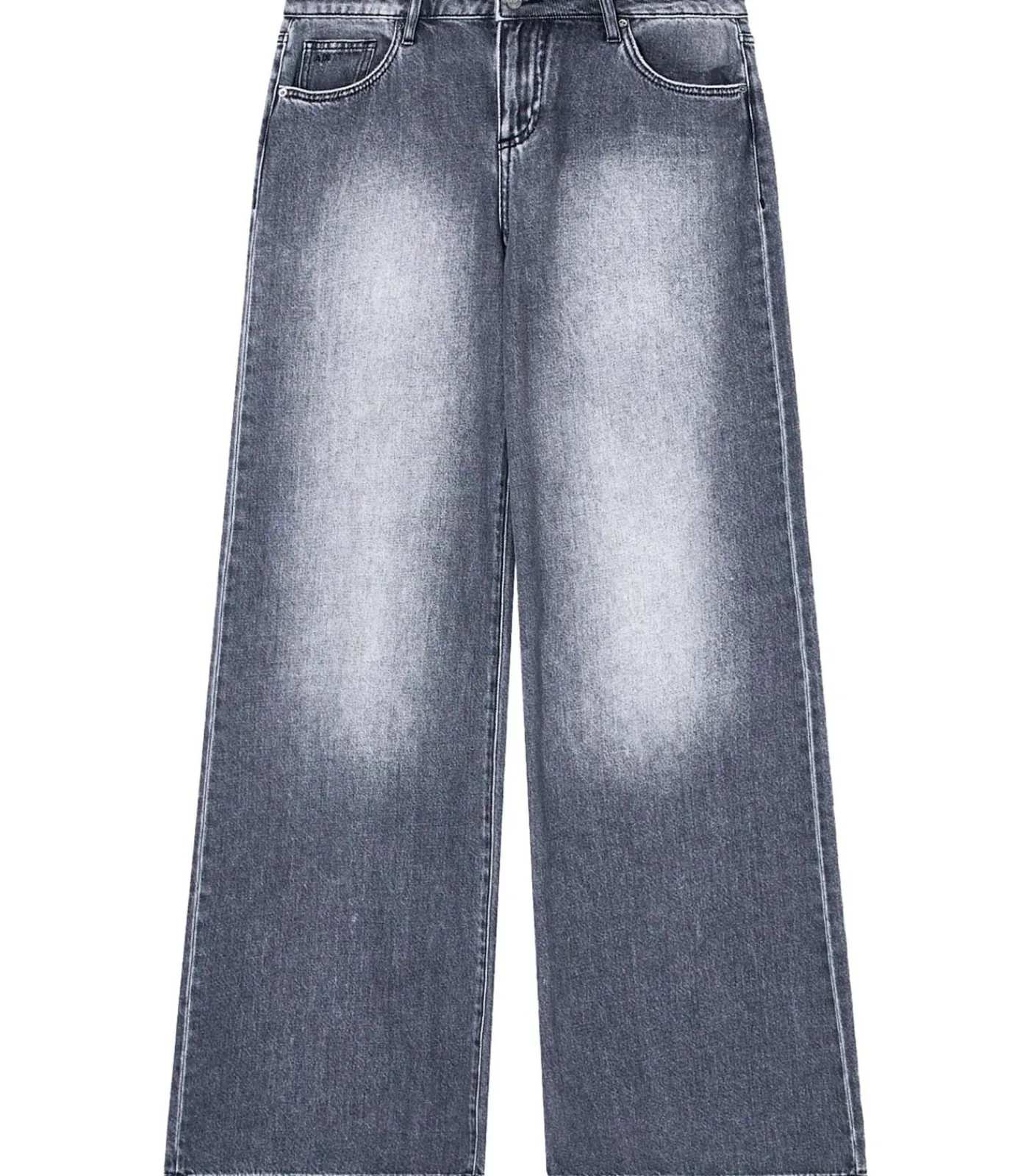 Kleur: Grijze denim. Samenstelling: 100% katoen. Pasvorm: Losse pasvorm. Sluiting: Rits en logoknoop. Lengte: Volle lengte. Details: Five–pocketmodel met een distressed grey wash, ton–sur–ton stiksels, riemlussen, logolabel op de achterkant. Gebruik: Armani Exchange damesjeans met een eigentijds design, ideaal voor een urban en trendy look met een onderscheidende touch.