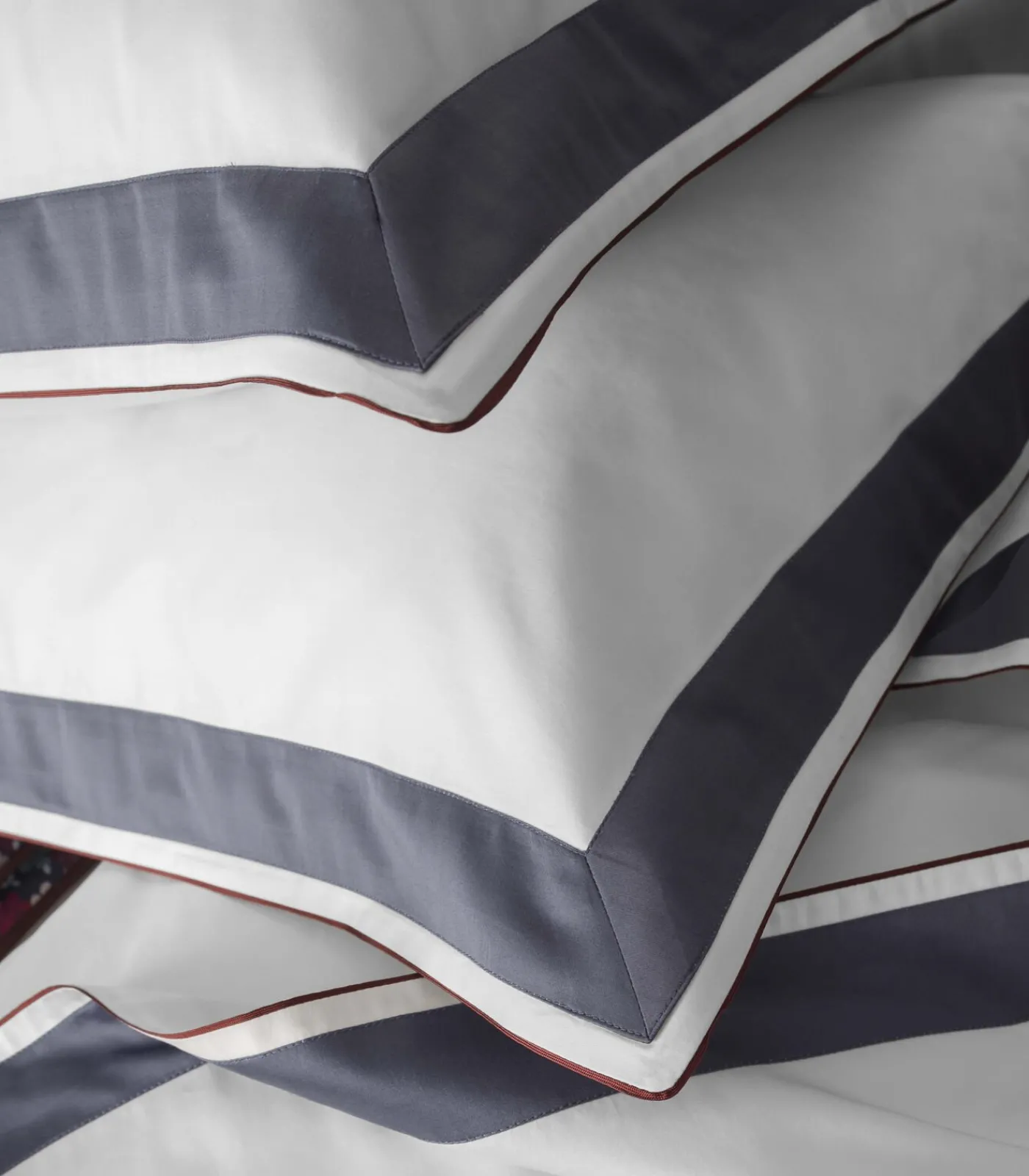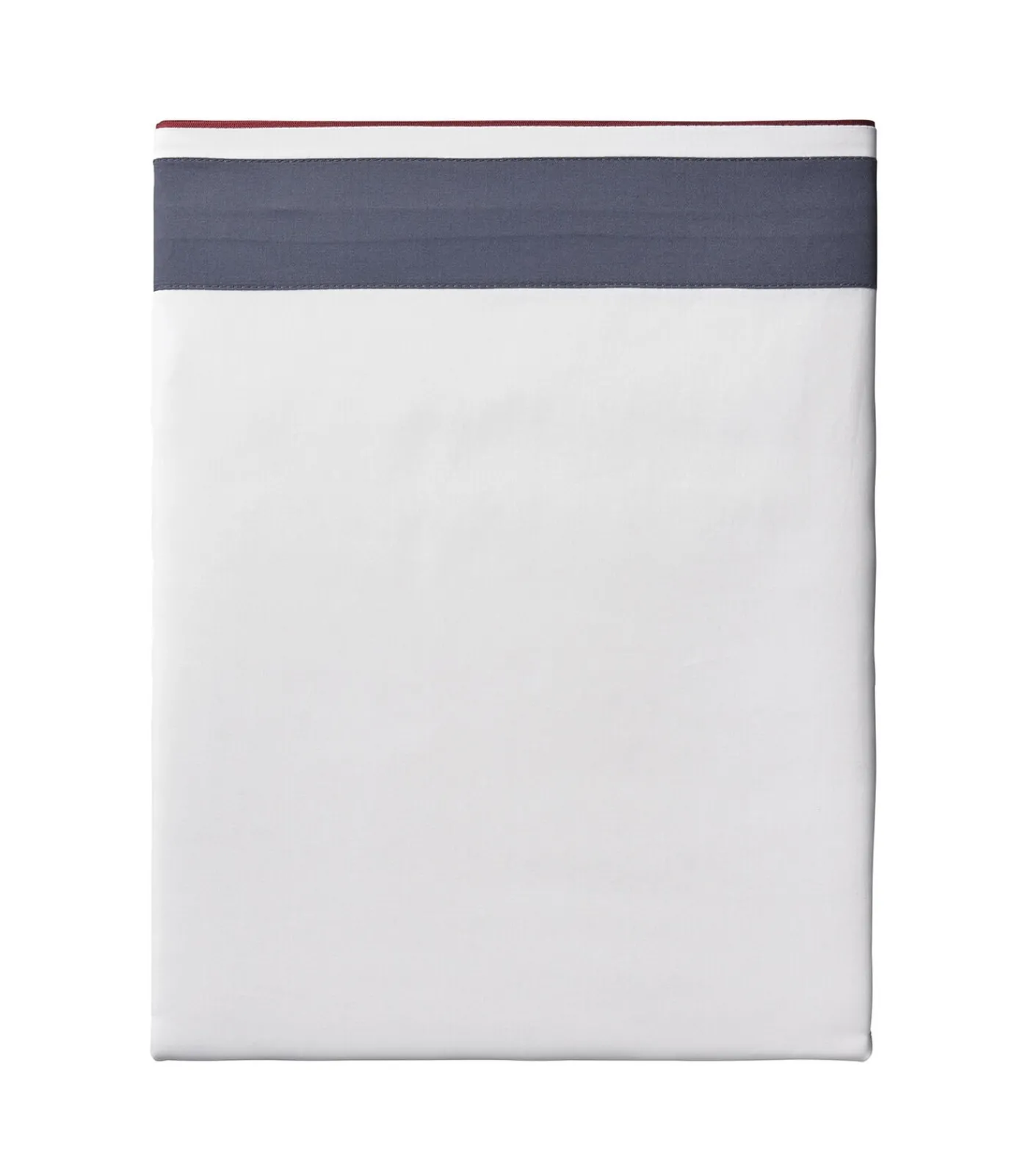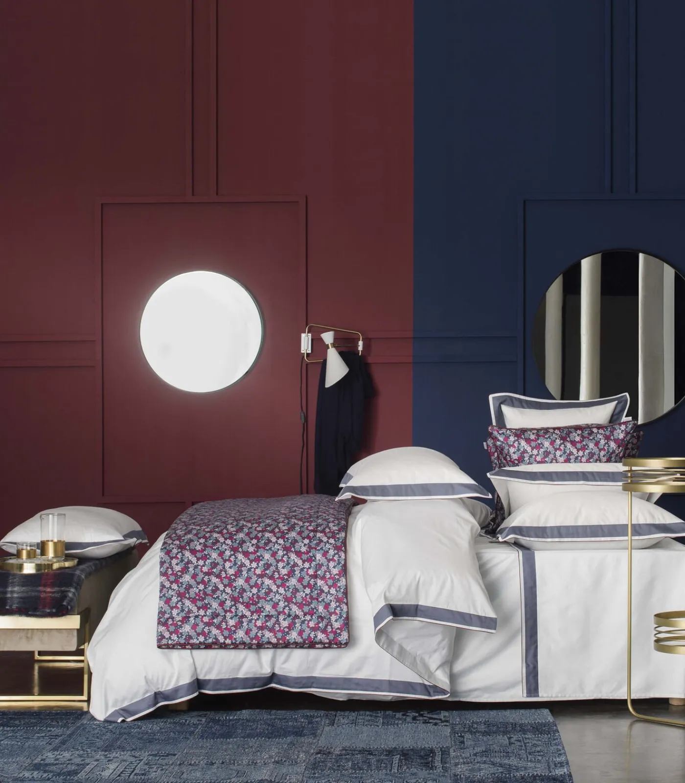 Het laken heeft opgestikte stroken van 4,5 cm en is afgewerkt met een gevlochten satijnlint.