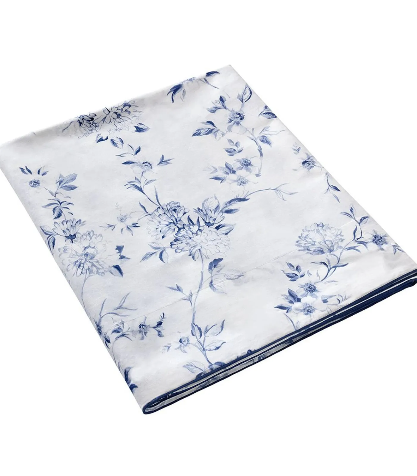 Blauwe bloemenprint op optisch witte achtergrondBies van 8 cmAfwerking met marine biezen