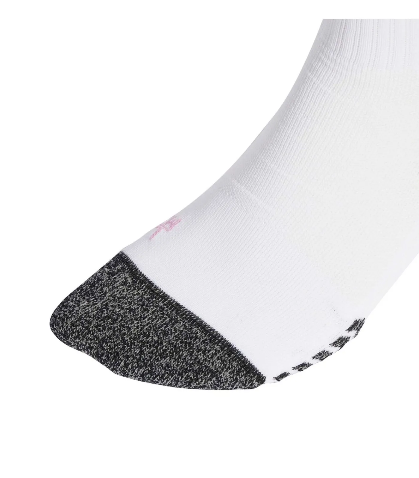 Kleur: Wit/Bliss Pink. Samenstelling: 84% gerecycled polyester, 12% katoen, 4% elastaan. Lengte: Knielang. Pasvorm: Anatomisch gevormd met technische ondersteuning. Details: Officiële Juventus thuissokken met FORMOTION–technologie die de natuurlijke bewegingen van de voet volgt voor optimale ondersteuning. Het felroze logo geeft de klassieke clubstijl een moderne touch. Versterkte teen en hiel voor meer weerstand. Duurzaamheid: Deels gemaakt van gerecyclede materialen om de impact op het milieu te verminderen. Gebruik: Ideaal voor voetbalwedstrijden of intensieve trainingen.
