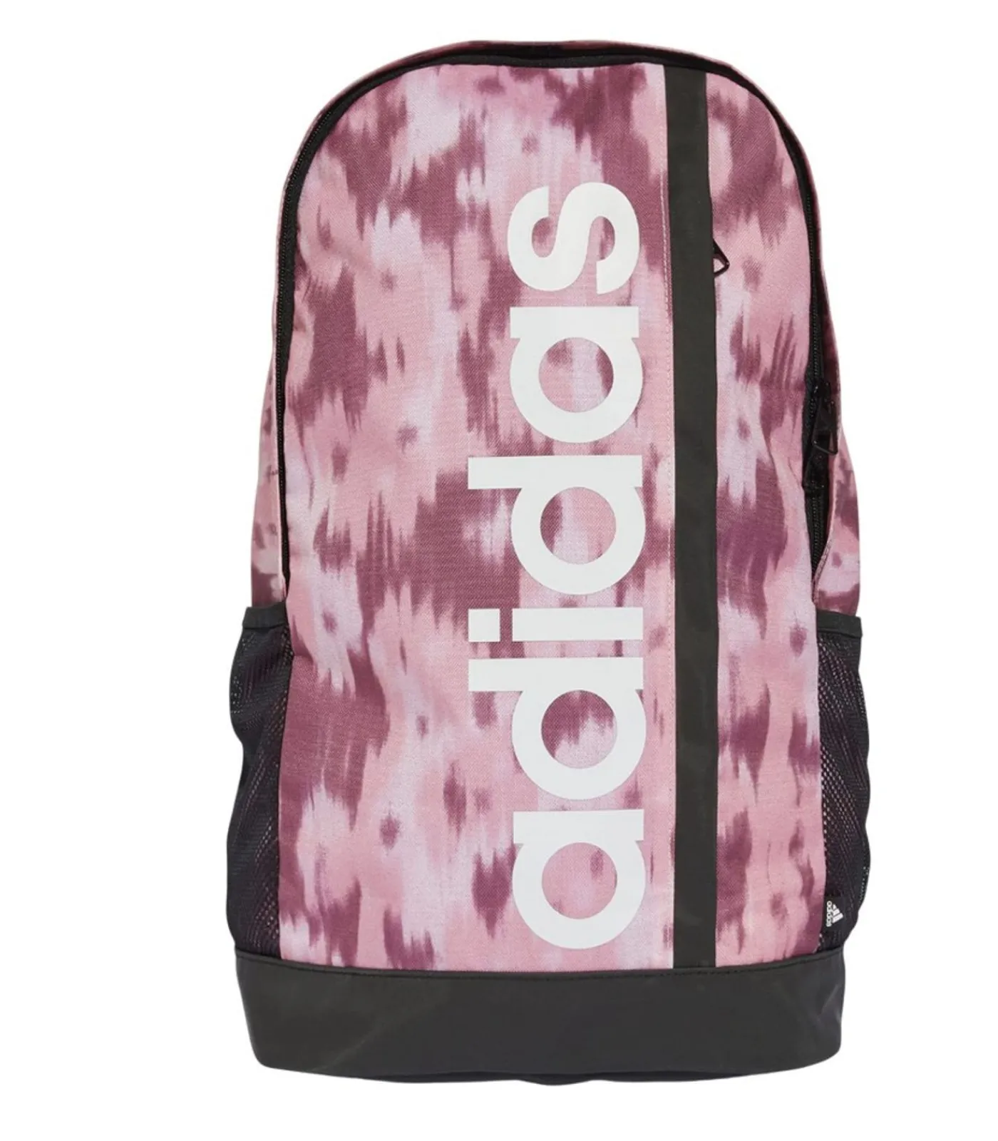 Adidas’s Linear GFX roze Rugzak is gemaakt van 100% hergebruikt polyester. De rugzak heeft een hoogte van 46 cm, breedte van 26.5 cm en een inhoud van 22.5 L. De diepte bedraagt 16 cm. Deze rugzak beschikt over een voorzak, rits, 2 zakken van gaaistof, een zijzak en 1 hoofdcompartiment. Het ontwerp is Batik Verven met het logo van Adidas. Het handvat is gevoerd en de schouderriemen zijn verstelbaar. De rugzak heeft lichtgewichtstoftechnologie en wordt vastgehouden via ritssluiting.