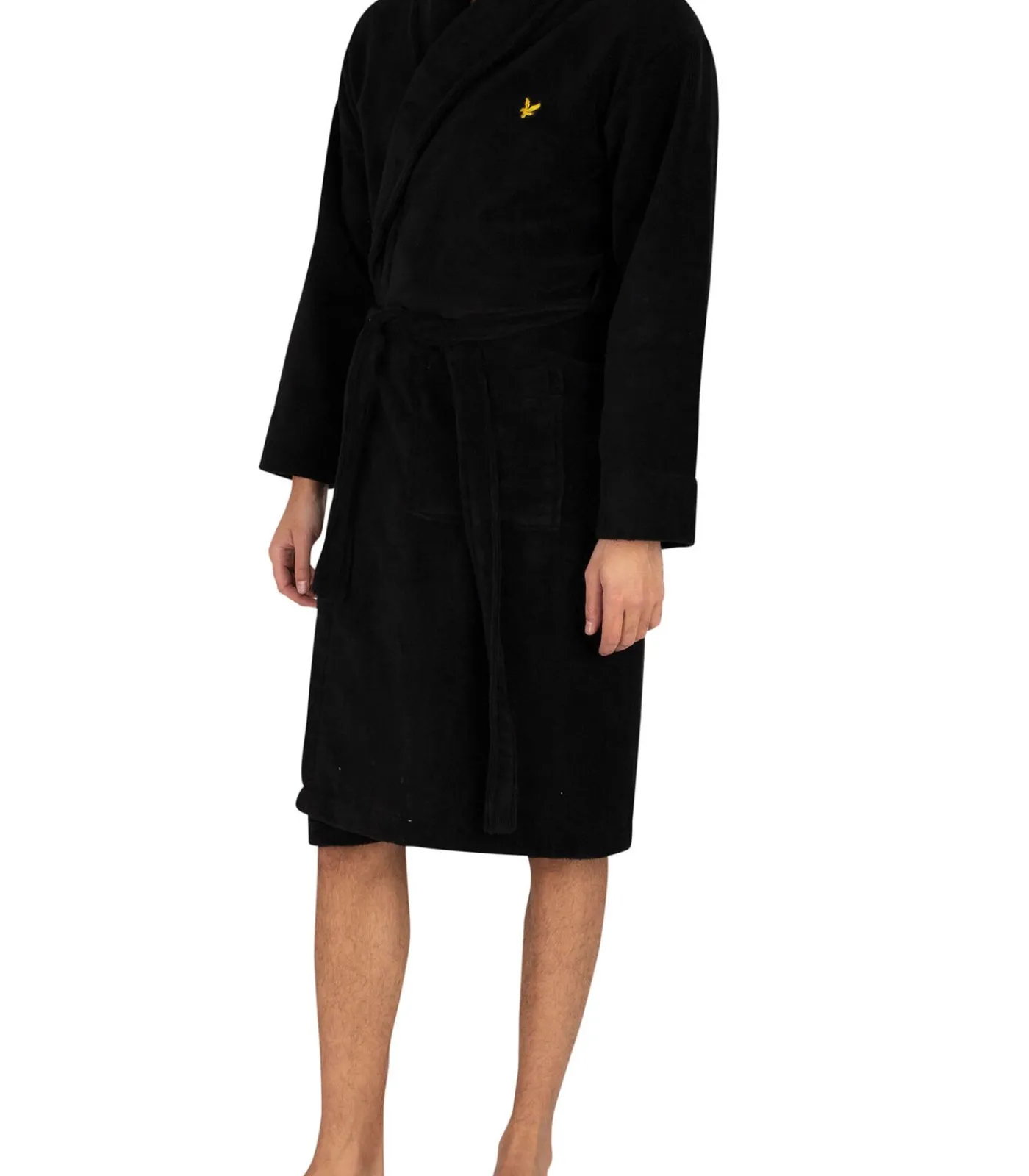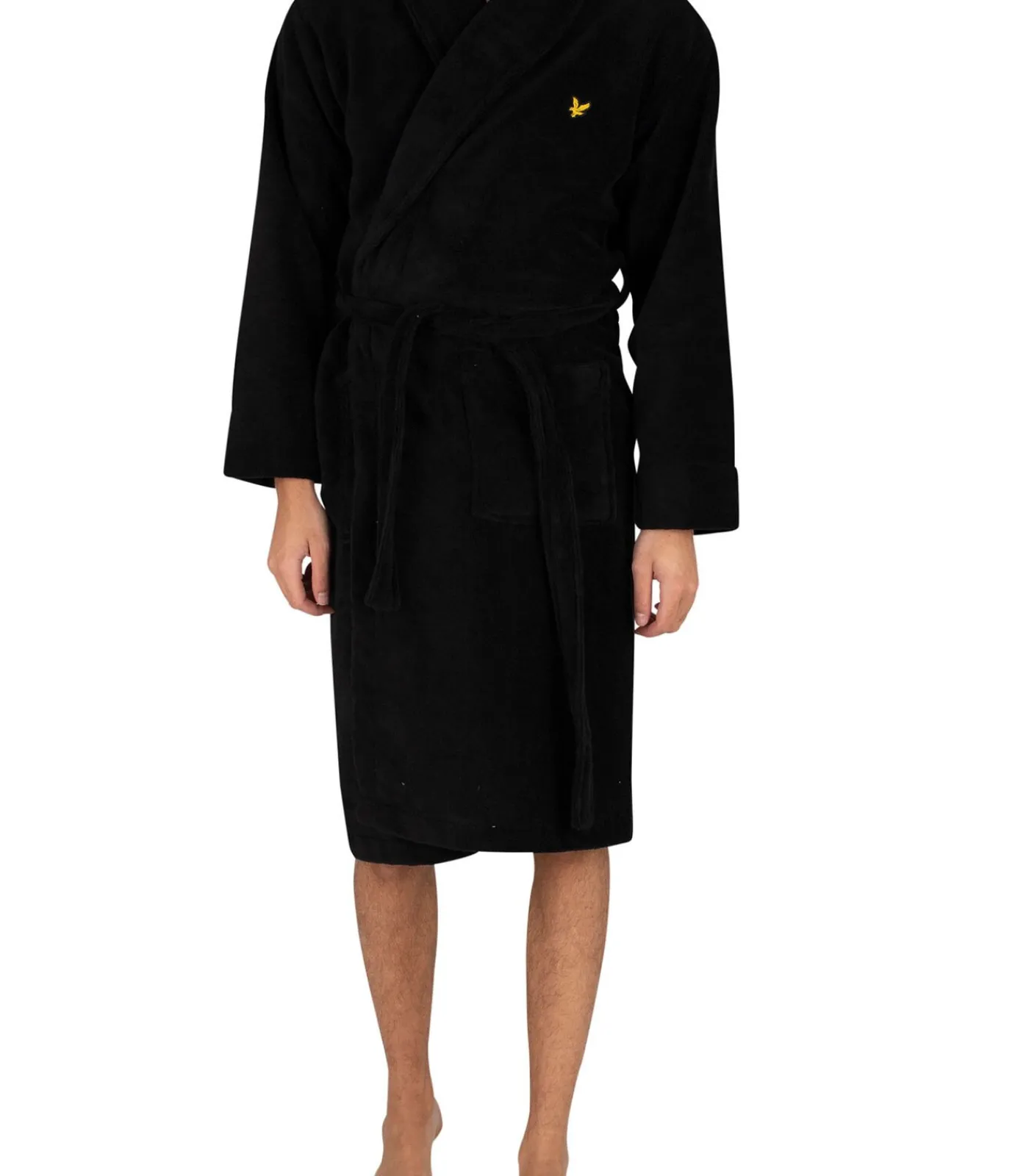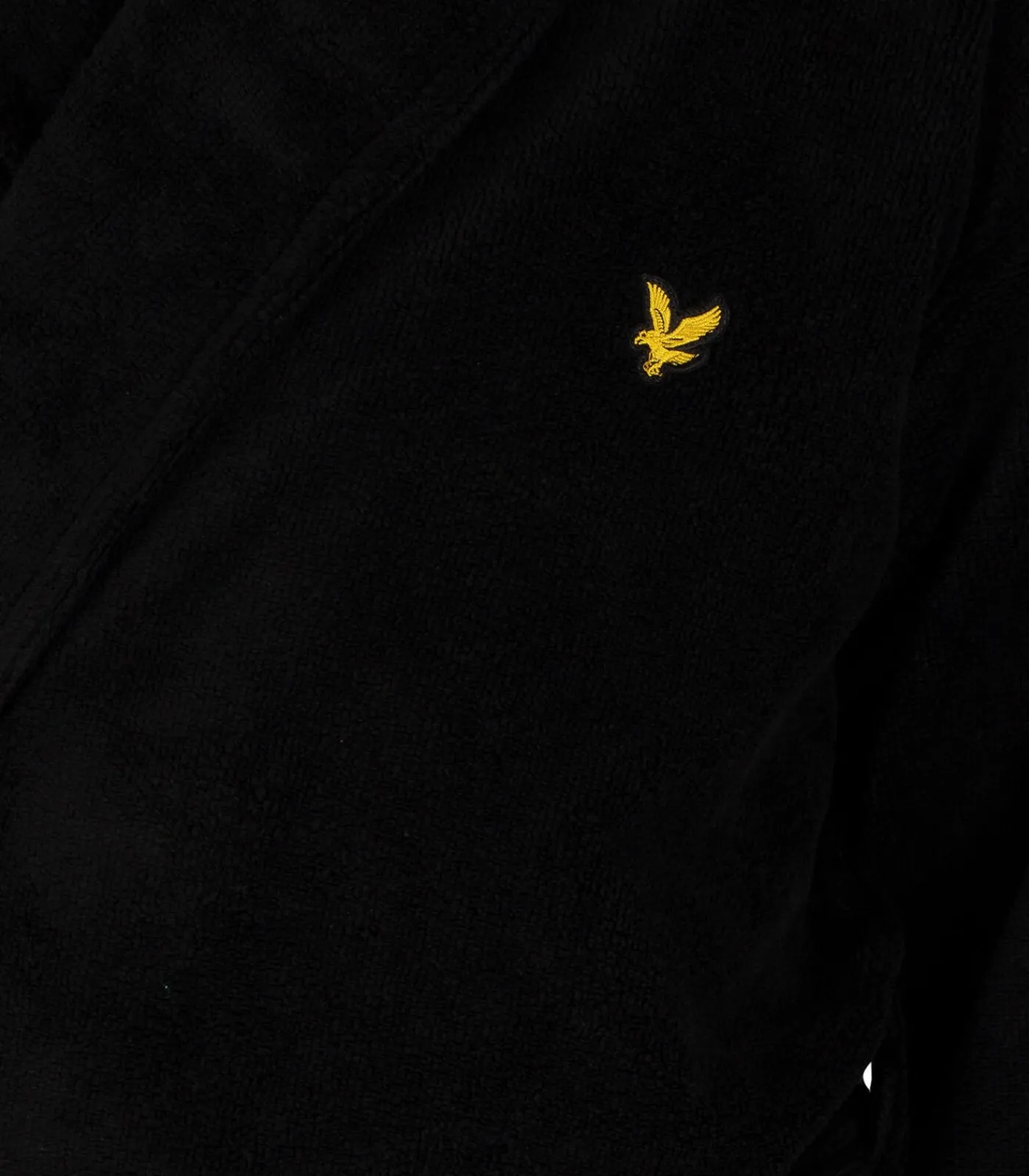 De Lucas badjas van Lyle & Scott heeft open zakken met een geborduurd logo op de borst. Deze badjas is gemaakt van badstof. Deze mantel wordt geleverd in zwarte kleur.