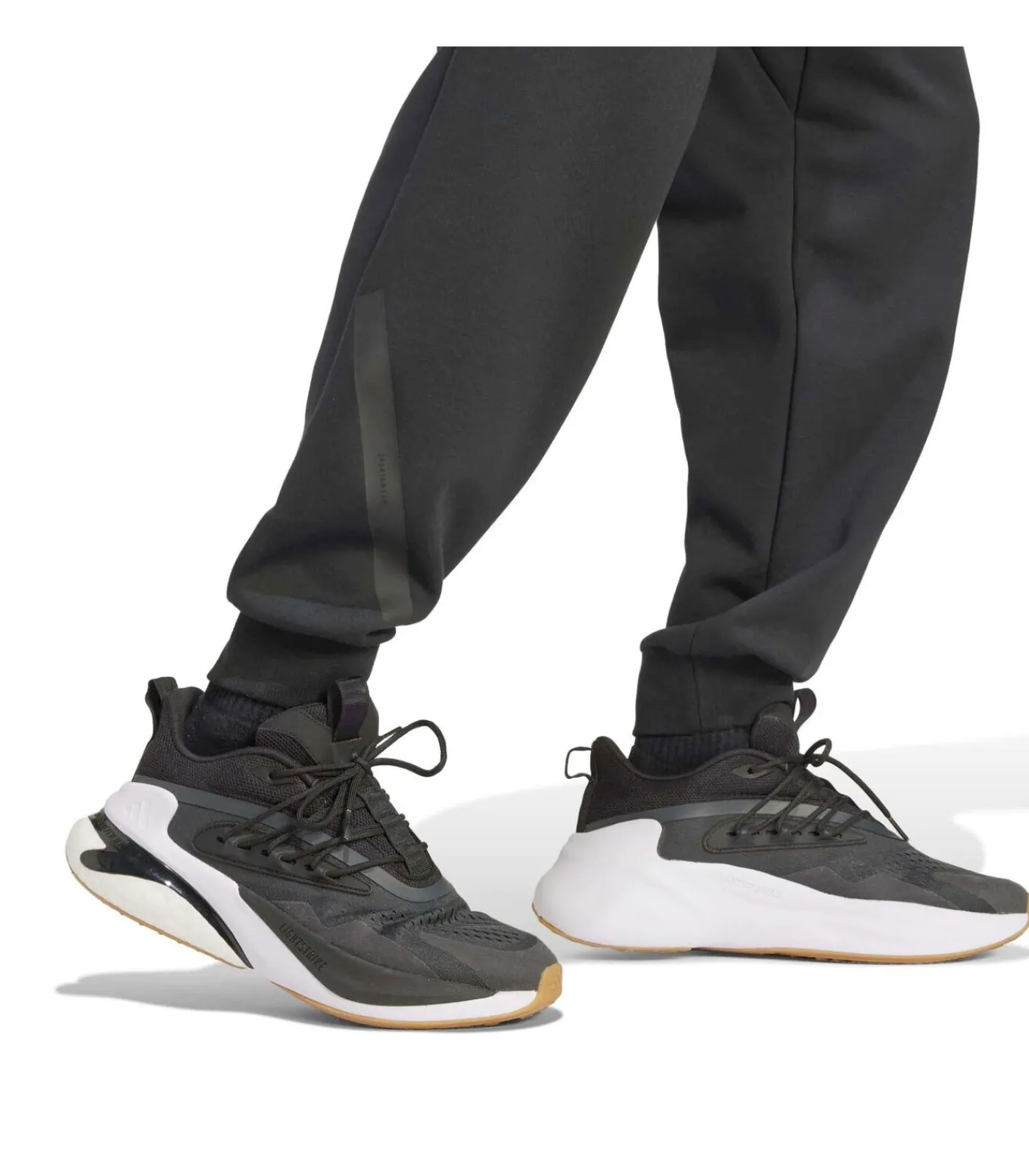 Kleur: Zwart Samenstelling: 57% gerecycled polyester, 43% katoen Pasvorm: Los Details: Elastische taille met trekkoord, ritszakken aan de voorkant, geribbelde manchetten, drielaags materiaal, matte rubberen printlijnen geïnspireerd op het veld Duurzaamheid: Gemaakt van gerecycled polyester om de impact op het milieu te verminderen Gebruik: Ideaal om te ontspannen of comfortabel te blijven tijdens warming–ups en dagelijkse activiteiten