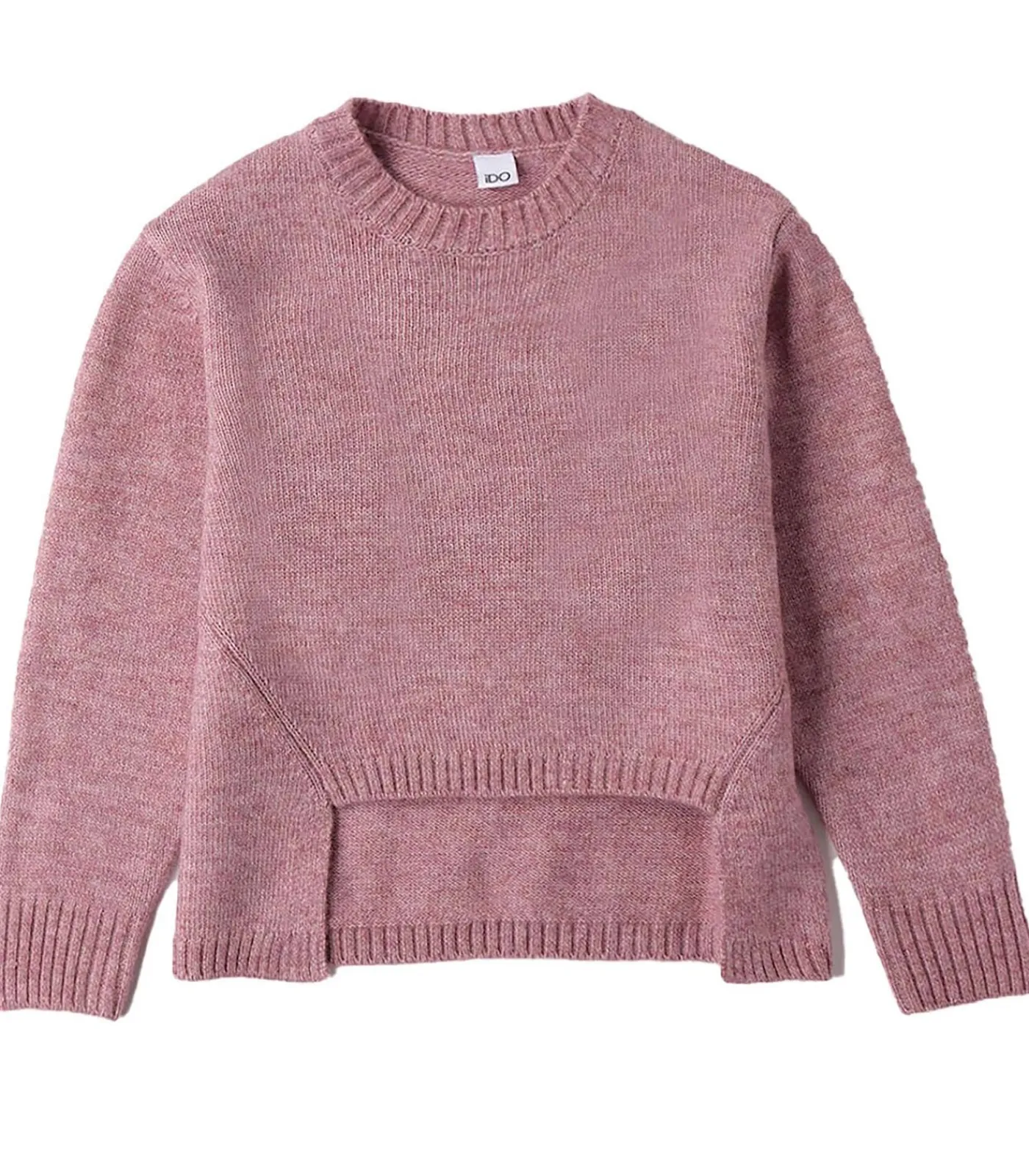 Kleur: antiekroze Samenstelling: 35% wol, 33% polyester, 32% acryl Mouwen: lang Halslijn: ronde hals Details: iDO trui voor 8–16 jaar van zacht tricot, met een modern design met een kortere voorkant en geribbelde randen. Perfect om een vleugje stijl toe te voegen aan dagelijkse outfits. Gebruik: ideaal voor school, vrije tijd en de koele dagen van de herfst en winter.