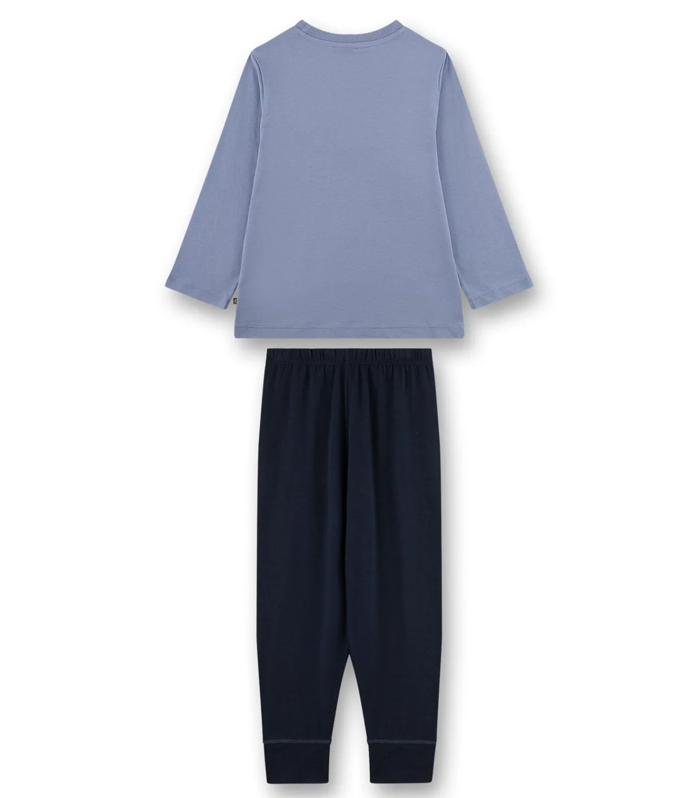 Sanetta pyjama voor jongens. Shirt met lange mouwen en motief en ronde hals. Effen, comfortabele pyjamabroek. Pyjama set van zachte katoenmix.