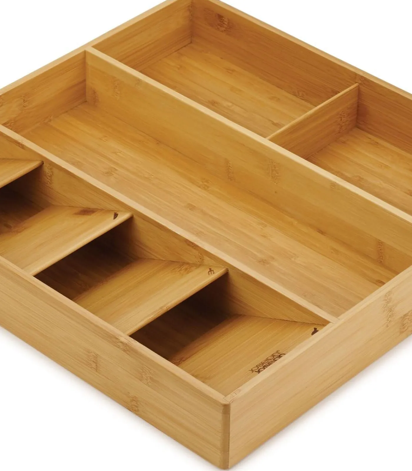 Met de Joseph Joseph Bamboe Organiser DrawerStore kun je de keukenlade altijd netjes organiseren. De verschillende segmenten in de organiser zorgen ervoor dat je onderscheidt kunt maken tussen verschillende voorwerpen. De organiser zorgt ervoor dat alles er in de keukenlade er netjes, opgeruimd en georganiseerd uitziet.