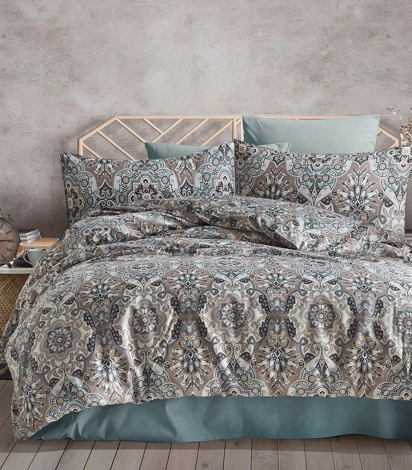 BEDRUKTE KATOENZIJD – 2 persoons beddengoed – 3 stuks: 1 dekbedovertrek 240×220 cm Knoopsluiting + 2 kussenslopen 65×65 cm – Samenstelling 100% gekamd katoen 200 TC. (80 draden/cm2) Machinewasbaar op 60°C. OEKO–TEX gecertificeerd product: het Oeko–Tex® label garandeert dat gecertificeerde artikelen vrij zijn van schadelijke stoffen die schadelijk kunnen zijn voor de gezondheid.Dit beddengoed is ontworpen voor eindeloos comfort.De gebruikte vezel is gekamd katoen, wat het edelste deel van katoen is. De vezels zijn lang en zeer zacht.De weeftechniek van het satijnkatoen geeft het materiaal een stralende, zachte en zeer zijdeachtige uitstraling. De stof is elegant, duurzaam en zeer comfortabel. De kleuren zijn eigentijds, de lijn is puur en verfijnd, en de afwerkingen zijn minutieus.Voor een goede nachtrust, kiest u voor comfortabele en mooie lakens: uw welzijn is verzekerd….Om de glans van de kleuren te behouden, raden wij wasbeurten aan op 60 °.Als u kiest voor drogen in de droogtrommel, kies dan voor een gematigde temperatuur om de vezels te sparen.Uw beddengoed zal zachter worden na meerdere wasbeurten.