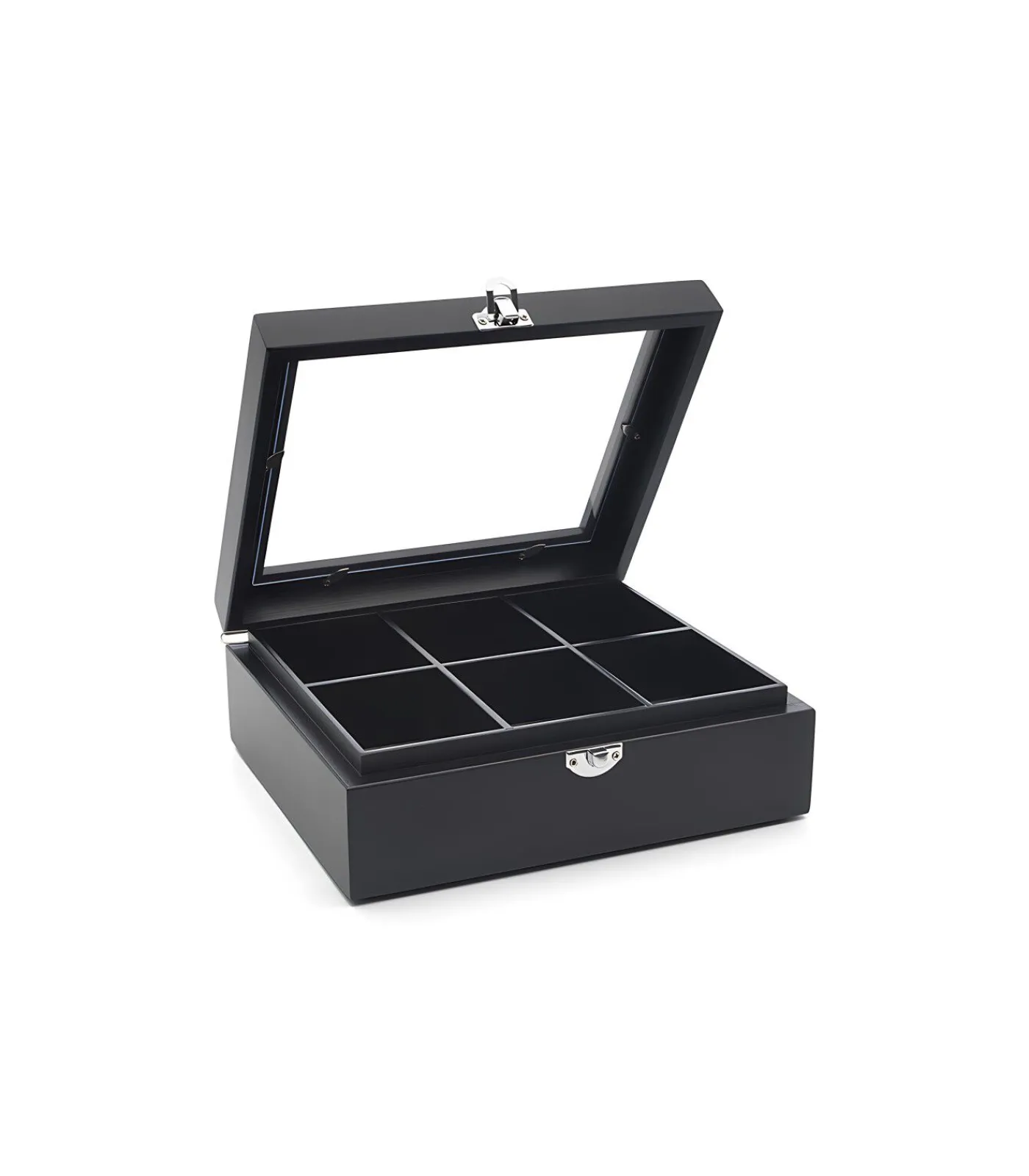 Handige theedoos voor het bewaren van theezakjes. Gemaakt van hoogwaardig bamboe in de trendy kleur zwart. Dankzij het transparante deksel heeft u altijd zicht op de inhoud. Verkrijgbaar met 6, 9 of 12 vakken.