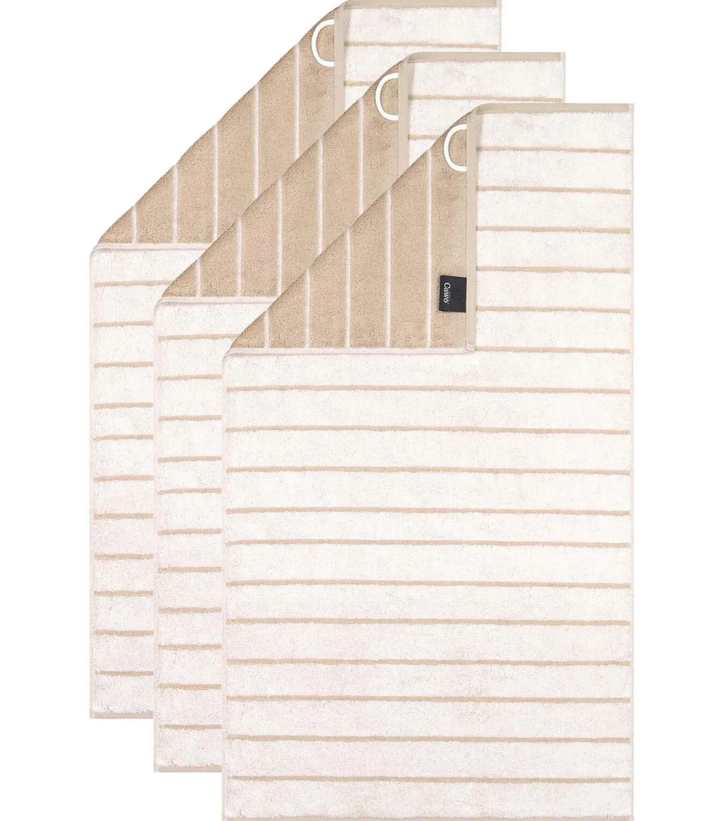 Drie hoogwaardige gastendoekjes van het merk CAWÖ. Gestreept dessin in omkeerbare look in extra fluffy badstof kwaliteit. 100% katoen – huidvriendelijk, onderhoudsvriendelijk, geschikt voor de droogtrommel.