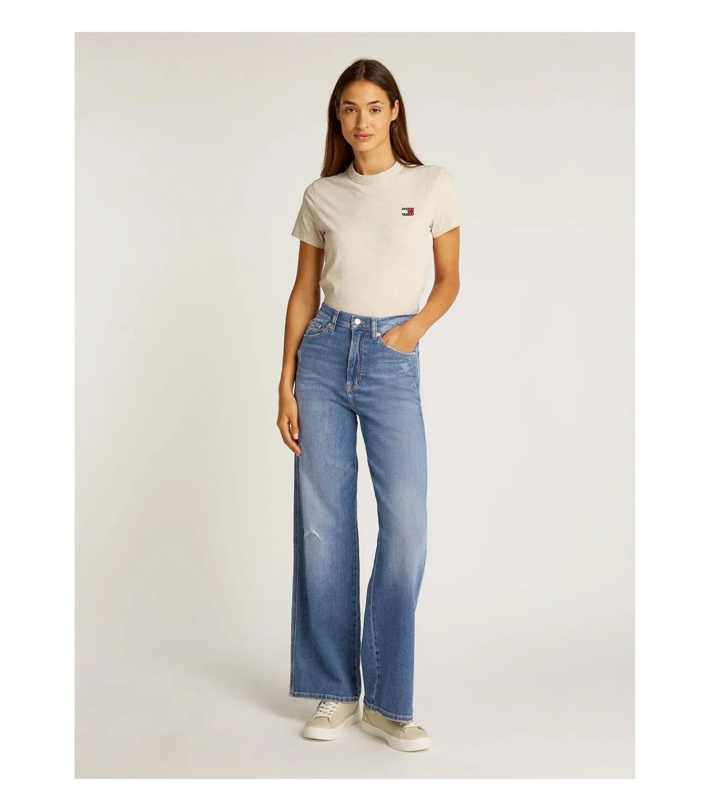 * Kleur: Dark Denim * Samenstelling: 50% geregenereerd katoen, 30% gerecycled katoen, 19% katoen, 1% elastaan * Pasvorm: Wijde pijp * Sluiting: Knoop * Details: Hoge taille, vervaagd effect, Tommy Jeans–logo op de achterzak * Gebruik: Wijde en comfortabele jeans, ideaal voor een eigentijdse casual look met een vintage touch.