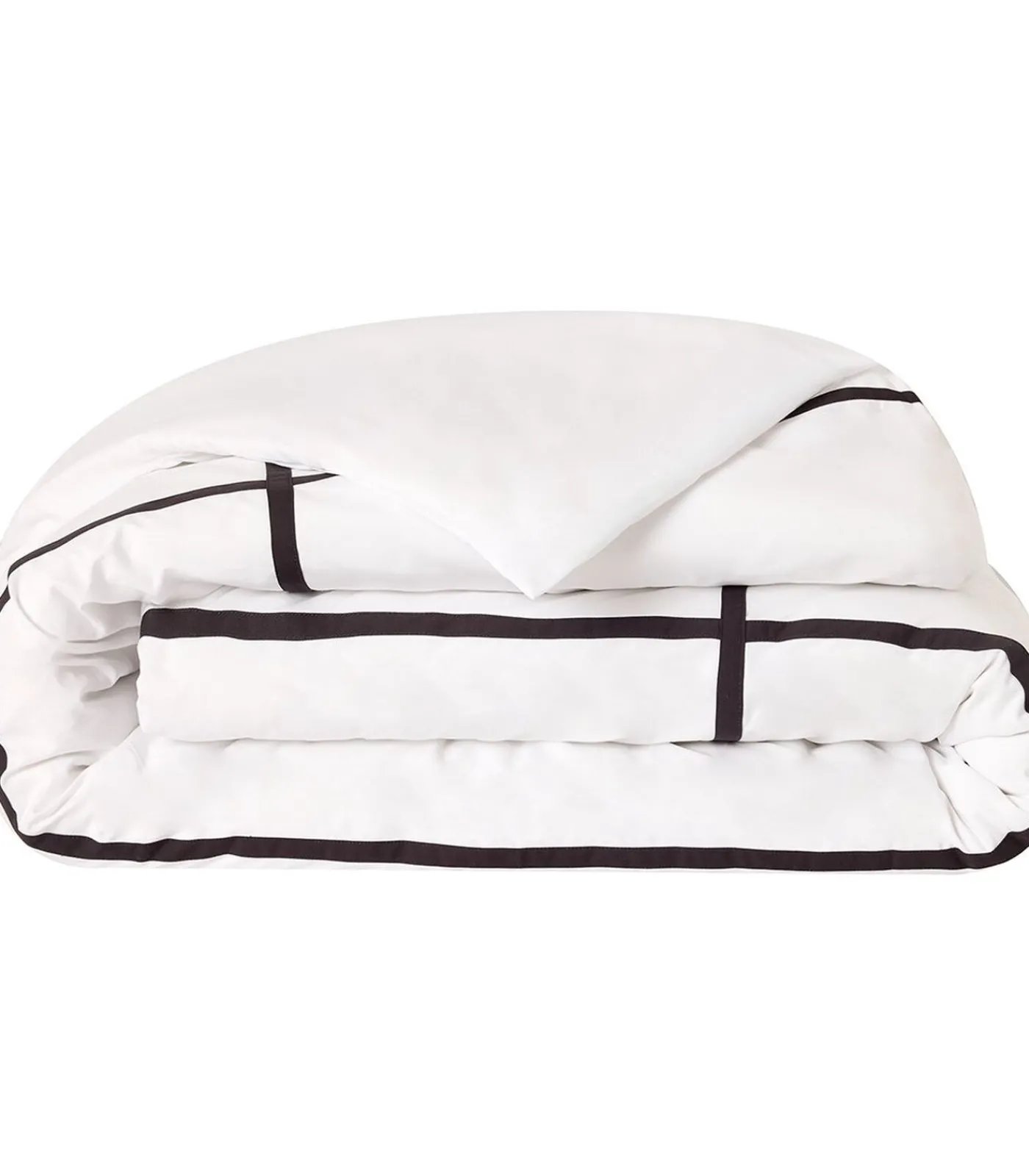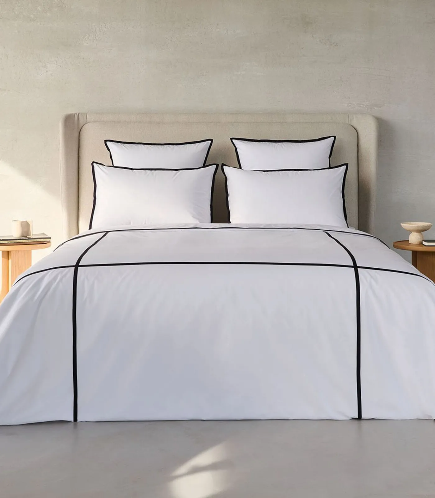 Voorkant effen wit met contrasterende zwarte applicatiestrips – Achterkant effen wit