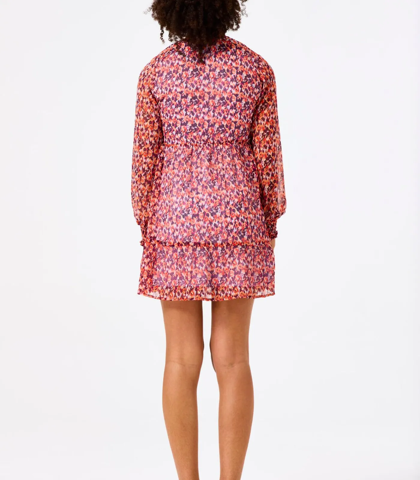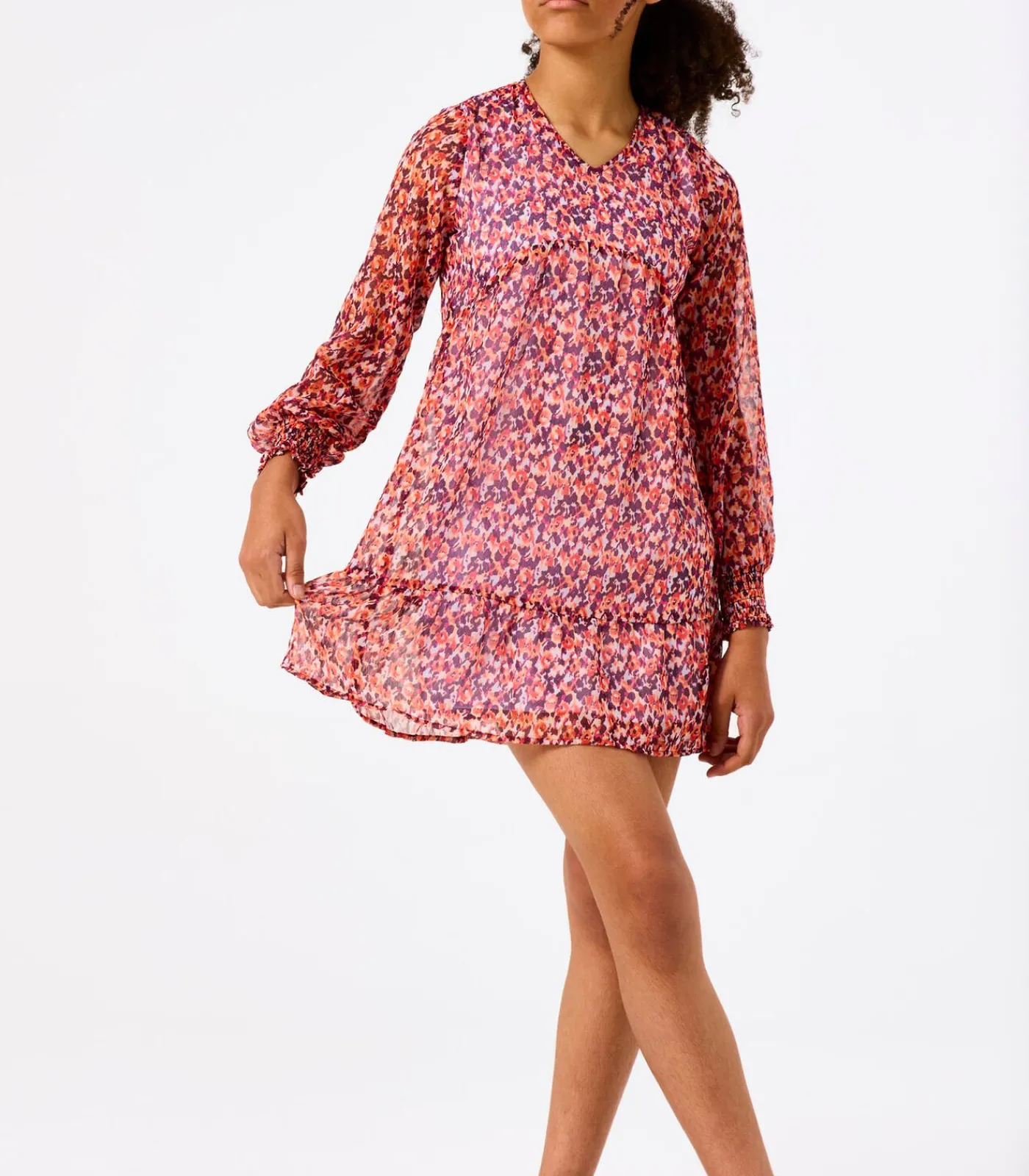 Midi jurk met allover print. Met dit item creëer je gemakkelijk een toffe outfit. Deze jurk heeft lange mouwen, een V–hals en een regular fit. Dit item is gemaakt van 100% recycled polyester.Dit GARCIA kledingstuk is gemaakt met gebruik van recyclede garen. Recyclede materialen worden gemaakt uit restmateriaal, wat weer wordt omgezet tot grondstof.