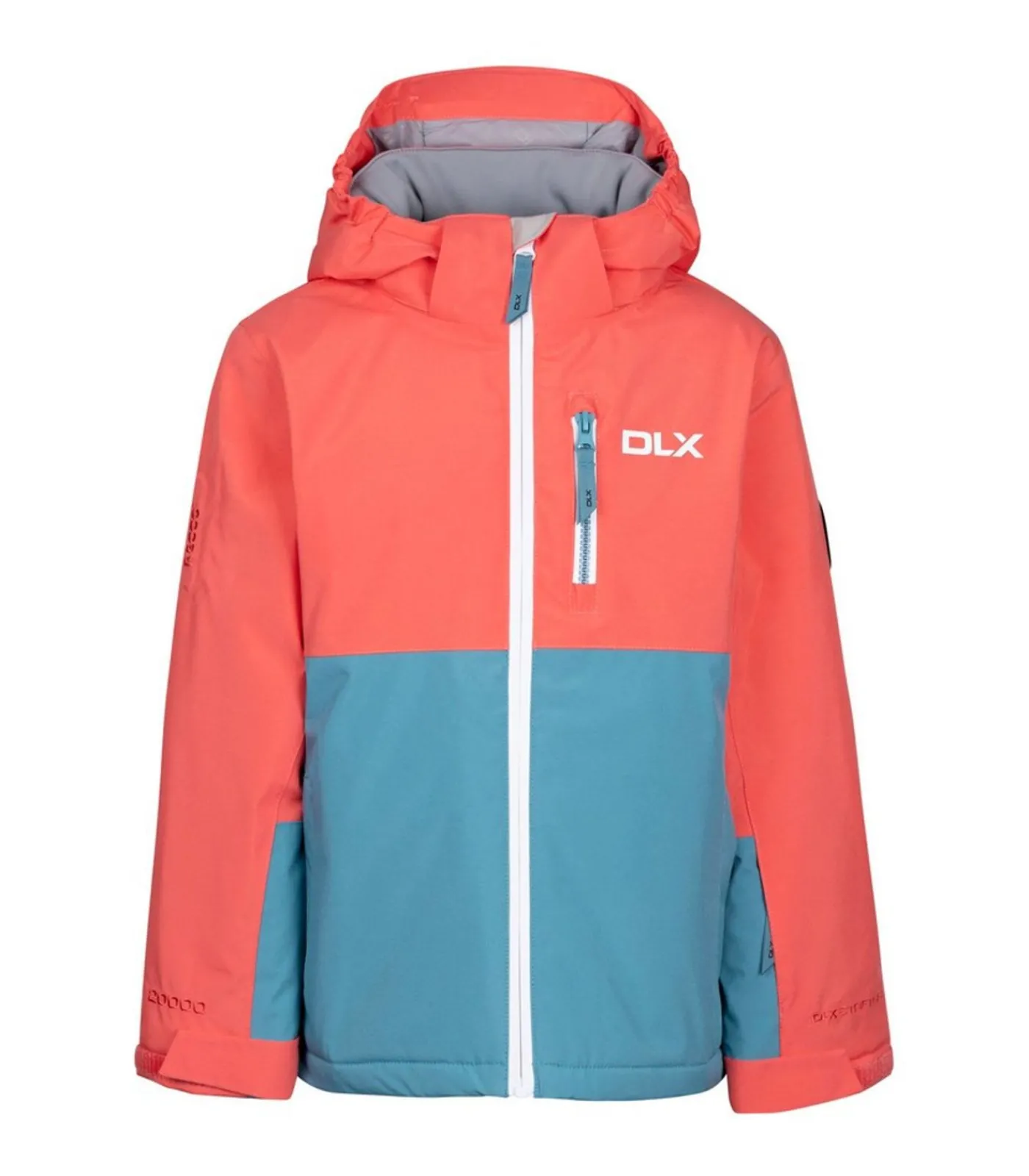 De Trespass Childrens/Kids Pauline DLX Ski Jacket is een hoogwaardige winterjas ontworpen voor jonge skiërs. Deze jas is gemaakt van 100% polyester voor het buitenmateriaal en de vulling, en heeft een donzen vulling voor uitzonderlijke warmte en isolatie. De voering is gemaakt van een combinatie van polyamide en polyester, terwijl de PU–membraantechnologie zorgt voor waterbestendigheid en ademend vermogen. Het jack heeft een color–block ontwerp met tekstaccenten, voor een stijlvolle en visueel aantrekkelijke look. Het jack heeft een capuchon en de mogelijkheid om de capuchon af te zetten met drukknopen voor extra veelzijdigheid. De lange mouwen hebben binnenin stretchmanchetten en drukknopen voor een stevige en comfortabele pasvorm. Daarnaast heeft het jack gewatteerde panelen, mouwpatches en ritsen onder de armen voor meer mobiliteit en ventilatie. De capuchon is afneembaar en wordt vastgezet met drukknopen voor bescherming op maat. Opbergmogelijkheden zijn onder andere een borstzak, twee zakken aan de onderkant, een zakje voor je skipas en sluitingen met ritsen, zodat je genoeg ruimte hebt voor essentiële spullen. De volledige ritssluiting is waterafstotend en biedt bescherming tegen de elementen. Al met al combineert de Trespass Childrens/Kids Pauline DLX Ski Jacket functionaliteit, warmte en stijl, waardoor het een ideale keuze is voor jonge skiërs die op zoek zijn naar een betrouwbare en high–performance winterjas.