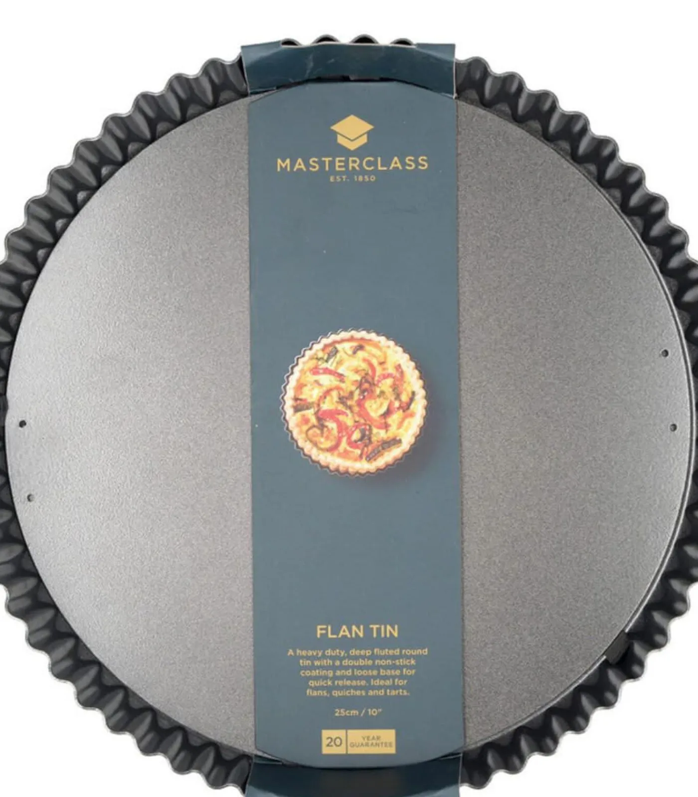 Maak quiche en nog veel meer gerechten met de MasterClass taartvorm met ribbels. De taartvorm heeft een losse bodem, waardoor je gemakkelijk de taart kan snijden. De bodem kan worden vastgehouden terwijl de rand naar beneden wordt geschoven en dan kan de taart worden geserveerd. De diameter van deze taartvorm is 25 centimeter en de rand is 3 centimeter hoog. De vorm heeft een standaard anti–aanbaklaag en is vaatwasserbestendig.