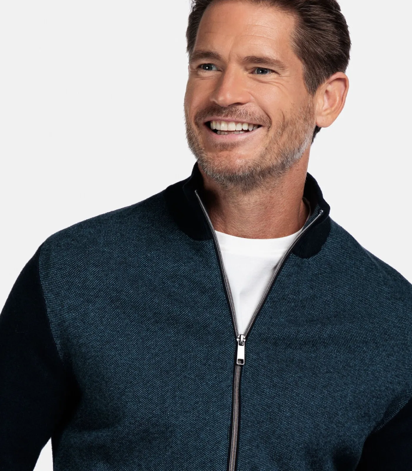 Dit vest is uitgevoerd in een modern fit en heeft een two–tone ontwerp met een glad, contrasterend voorpand en gebreide mouwen, achterpand en boorden van een zachte katoen–cashmere mix. Het model heeft een opstaande kraag, ritssluiting en zakken met rits in de zijnaden. De combinatie van kleuren en materialen geeft het vest een stoere, moderne uitstraling en maakt het geschikt voor zowel casual als sportieve looks. Artikelnummer 522190–60
