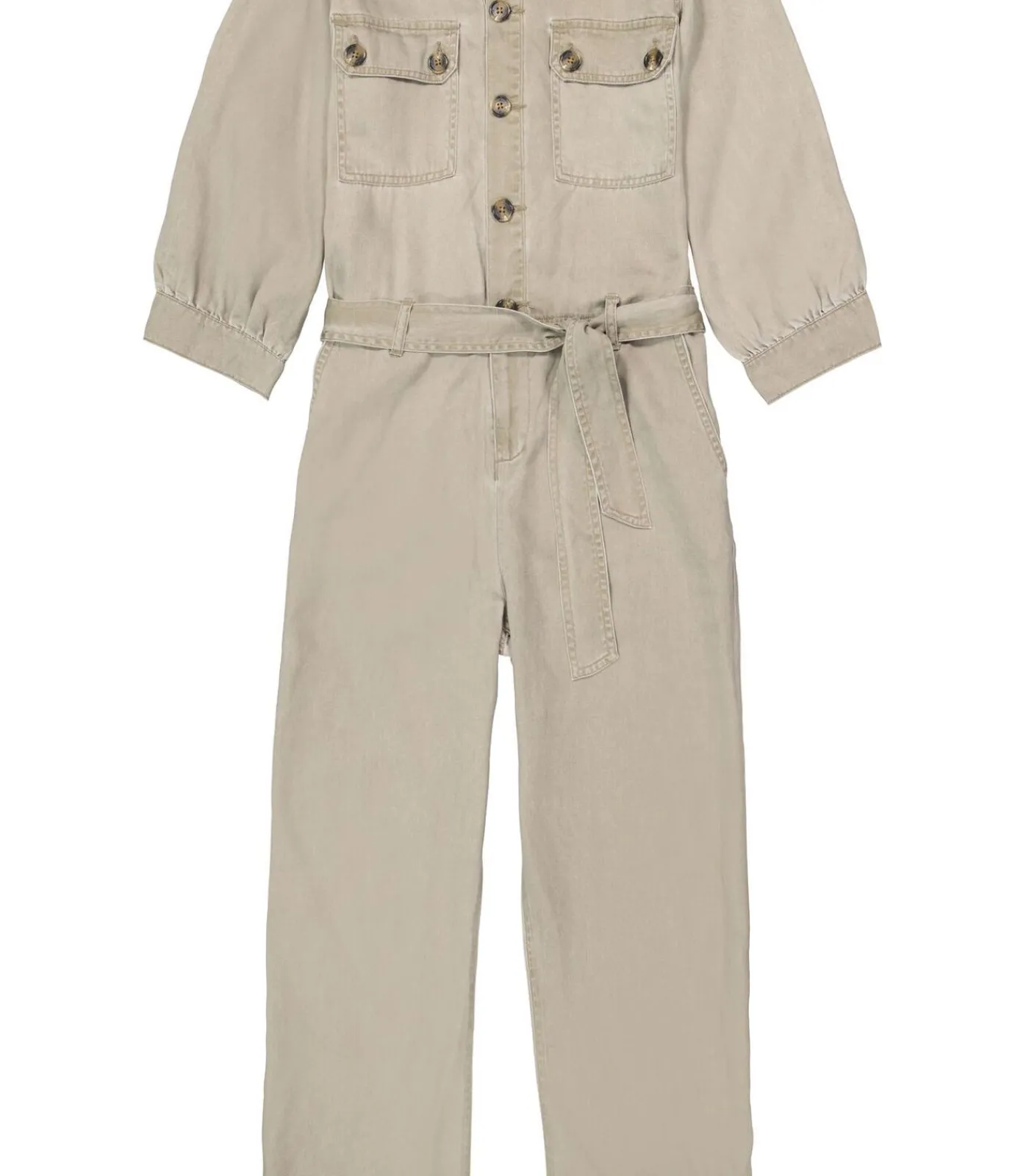 Twill jumpsuit met strikceintuur. Perfect voor een stoere look! Deze jumpsuit heeft een knoop– en ritssluiting, borstzakken aan beide kanten en een relaxed fit. Dit item is gemaakt van 100% lyocell.