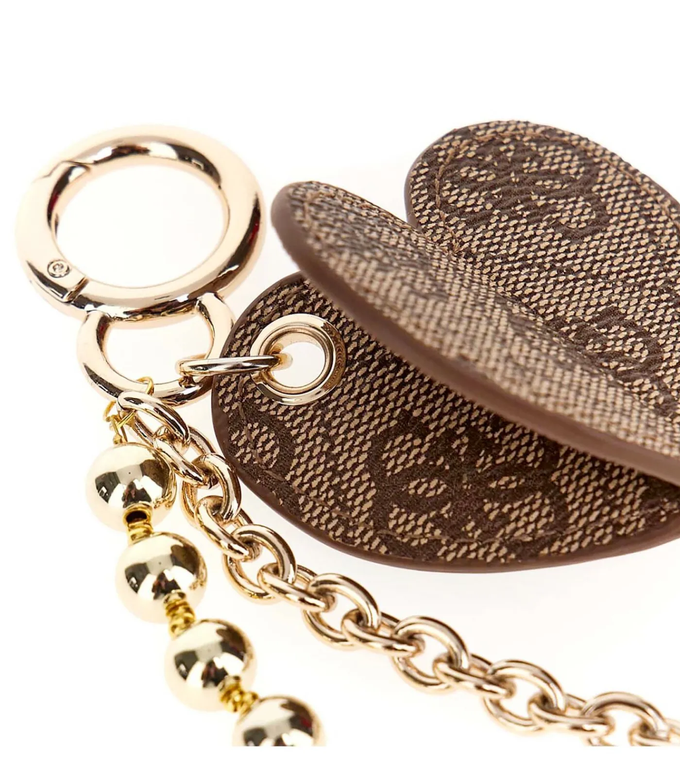 Kleur: Milk Logo Samenstelling: 100% Polyurethaan Details: Brenton sleutelhanger met logo–harthanger en gouden metalen ketting met bedeltjes Gebruik: Ideaal om sleutels stijlvol op te bergen of als decoratief accessoire om aan tassen en rugzakken te bevestigen