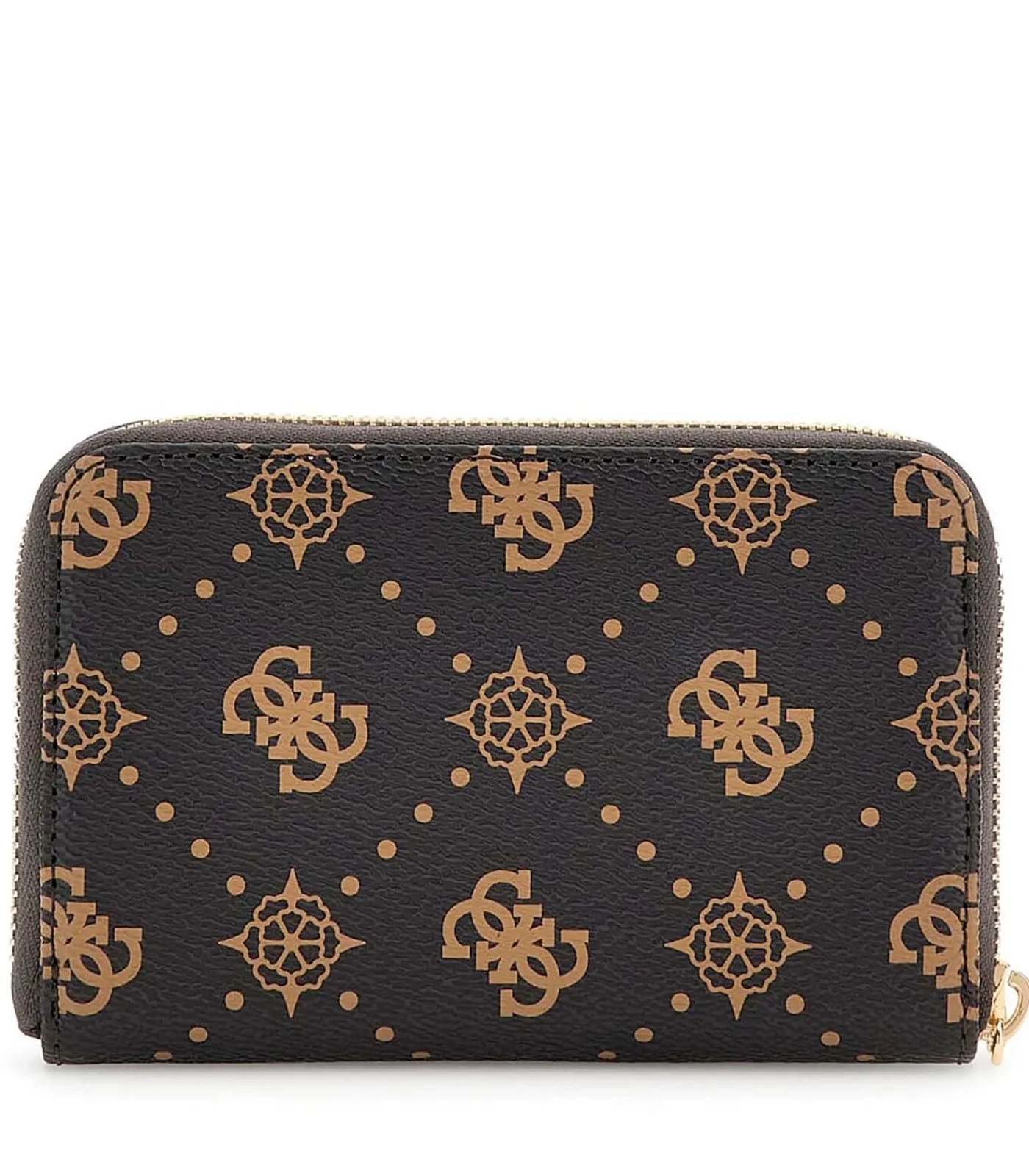 Kleur: Espresso–logo Samenstelling: 100% polyurethaan Sluiting: rits Binnenkant: hoofdvak met intern ritsvak voor munten en creditcardvakken Afmetingen: 14 x 9 x 3 cm Details: 4G–print en pioenrooslogo, lichtgouden hardware, logo–opschrift met metalen detail op de voorkant Gebruik: perfect voor het elegant opbergen van pasjes en munten, wat een verfijnde touch toevoegt aan uw dagelijkse look