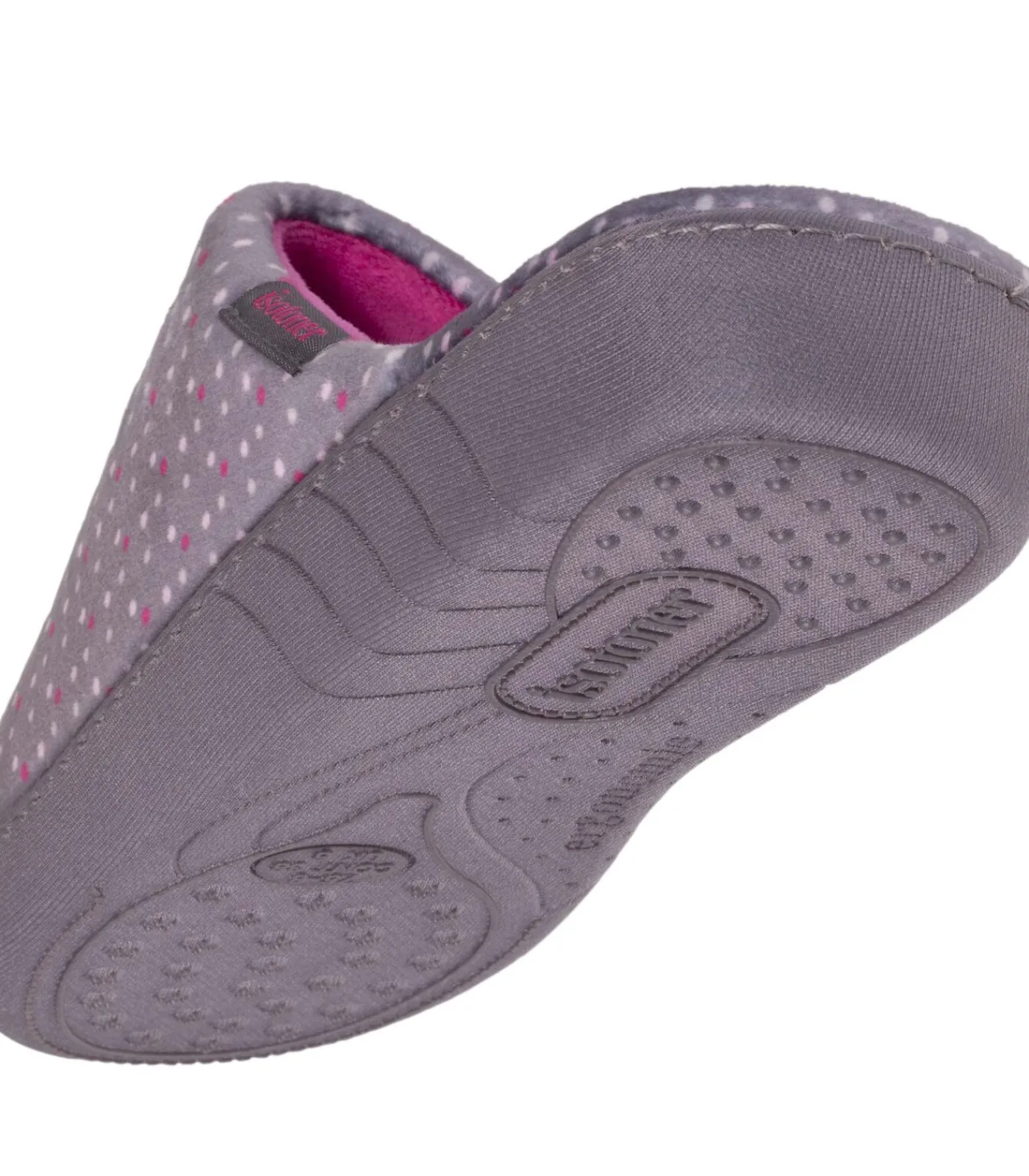 Deze damesmuiltjes in veelkleurige stippen zijn gemaakt van microvelours. De ergonomische binnenzool biedt onovertroffen ondersteuning voor de voetboog. Het memory foam in de binnenzool vormt zich perfect naar de vorm van je voet voor maximaal comfort. Machinewasbaar op 30°C.