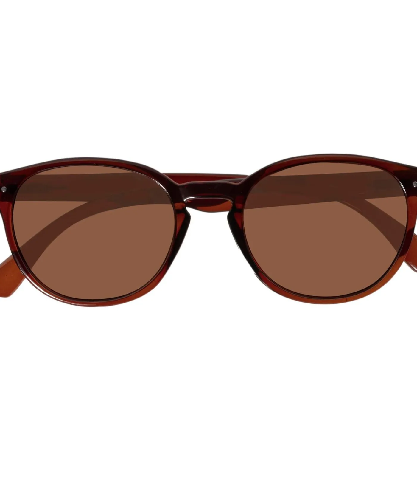 Deze zonnebril in pantovorm is een tijdloos model. De doorschijnende koffiekleur geeft hem een modieus tintje. Dit montuur van gerecycled plastic past bij elke gezichtsvorm dankzij de flexibele veren. Met zijn categorie 3 gepolariseerde glazen garandeert dit montuur visueel comfort en optimale bescherming tegen schittering. Voldoet aan de Europese verordening 2016–425 in overeenstemming met ISO 12312–1:2022.