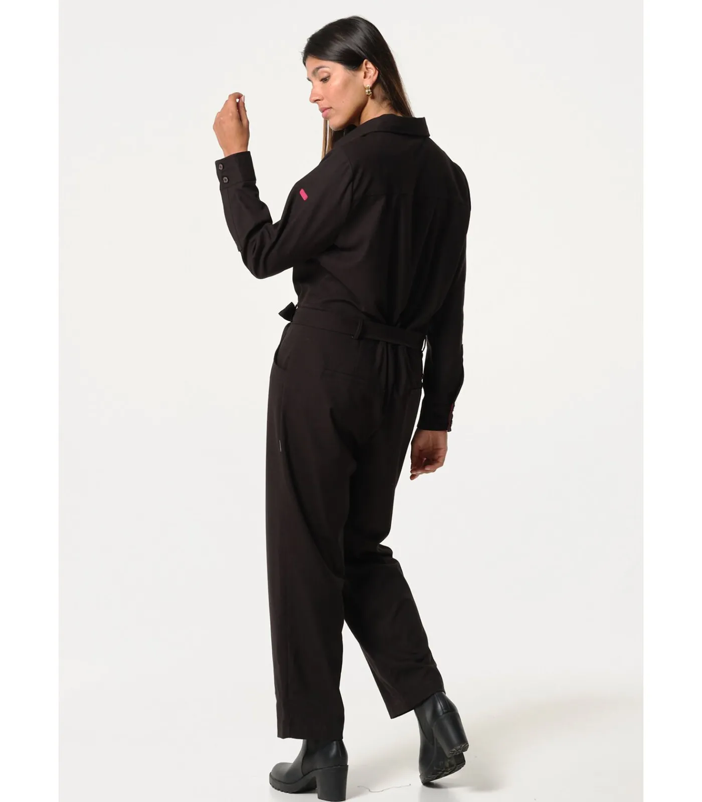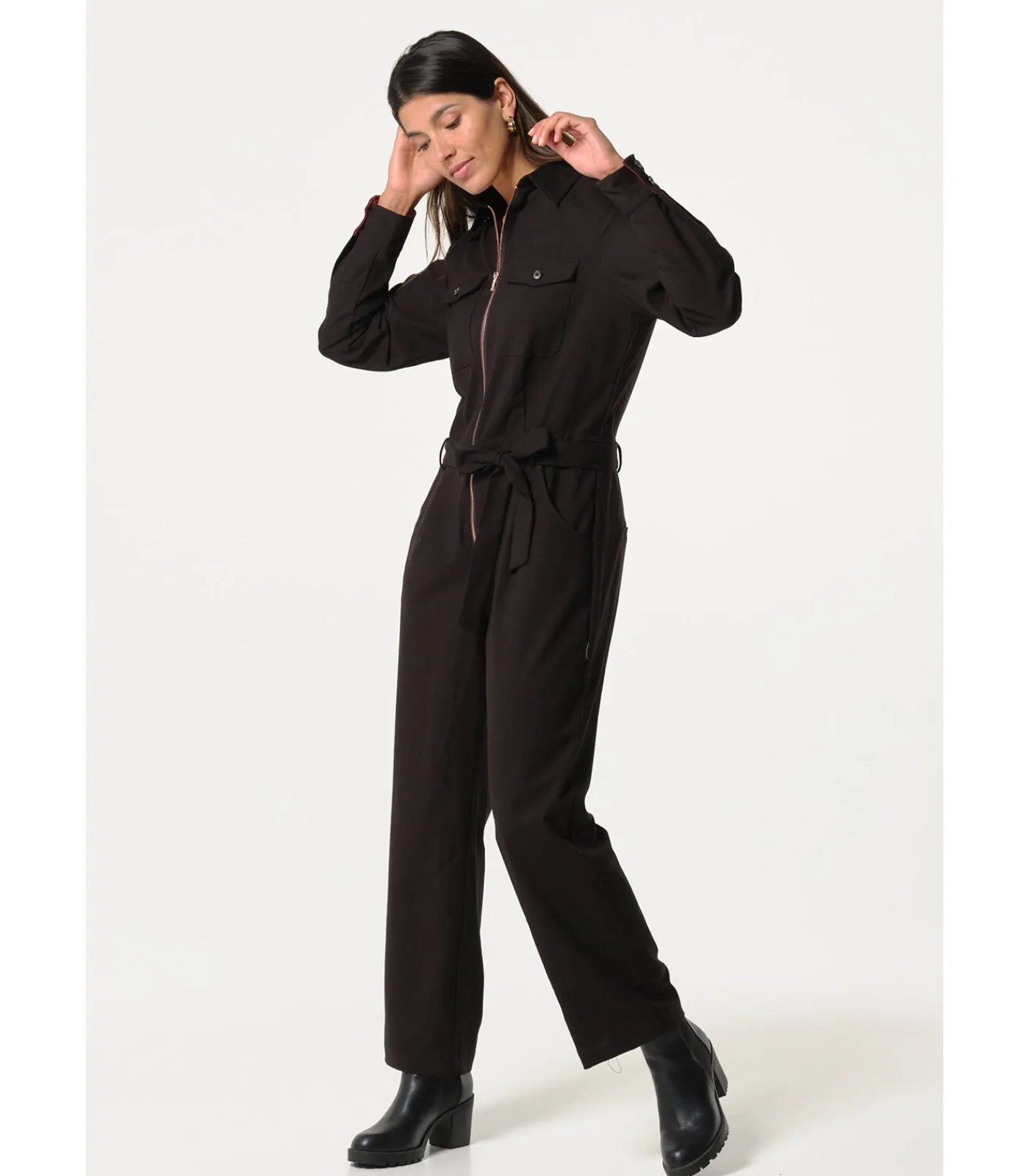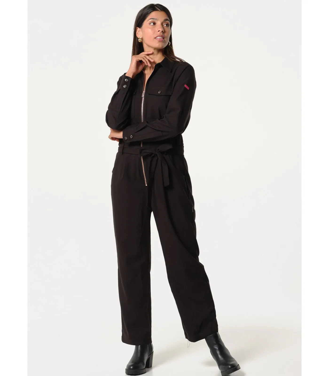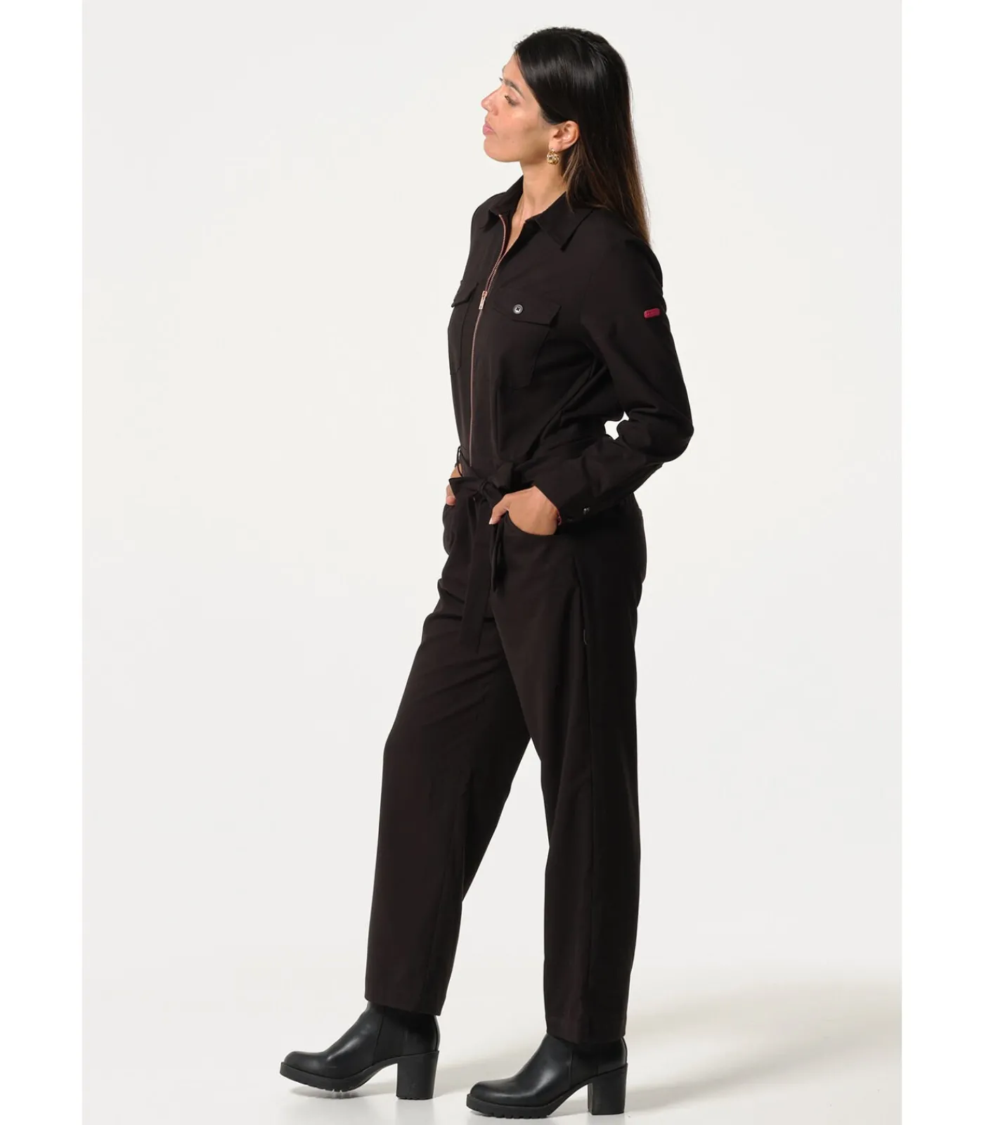 Lange jumpsuit van comfortabel en rekbaar materiaal, ideaal voor een outfit die zowel elegant als casual isOverhemdkraag en lange mouwen met knopen voor een verfijnde en tijdloze lookBorstzakken met knopen en opening met ritssluiting voor een praktisch en modern tintjeDe Galloway Observatory damesjumpsuit is verkrijgbaar in marineblauw en biedt je een trendy stijl en een elegant silhouet.