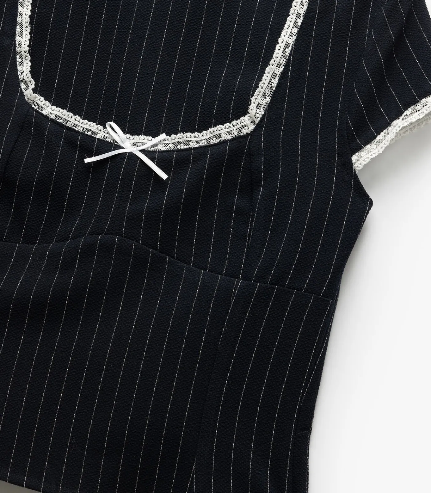 Lace detail striped short sleeve slim fit blouse.