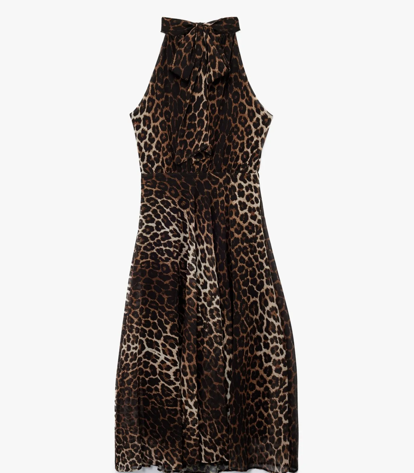 Koton Crepe fabric sleeveless halter neck midi leopard printed dress.