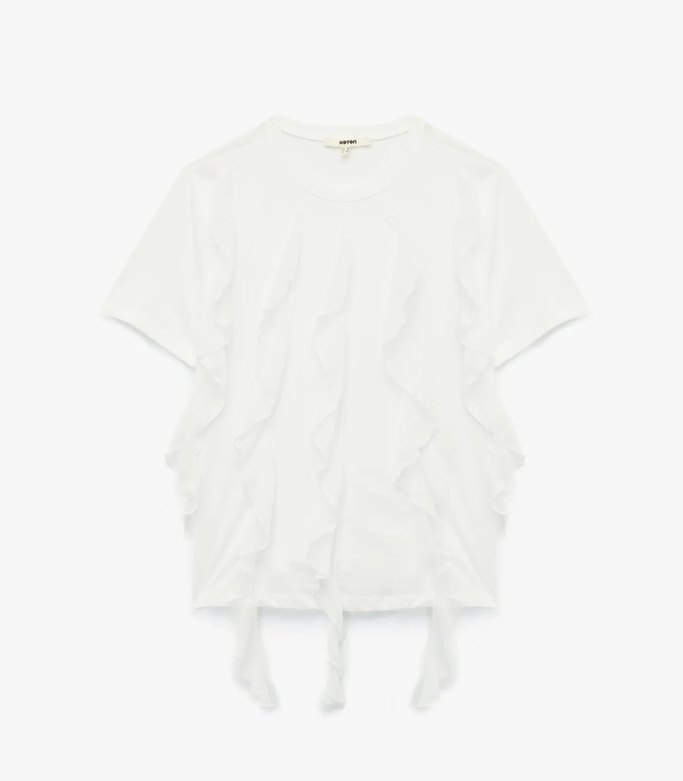Koton Cotton short sleeve crew neck ruffle t–shirt.