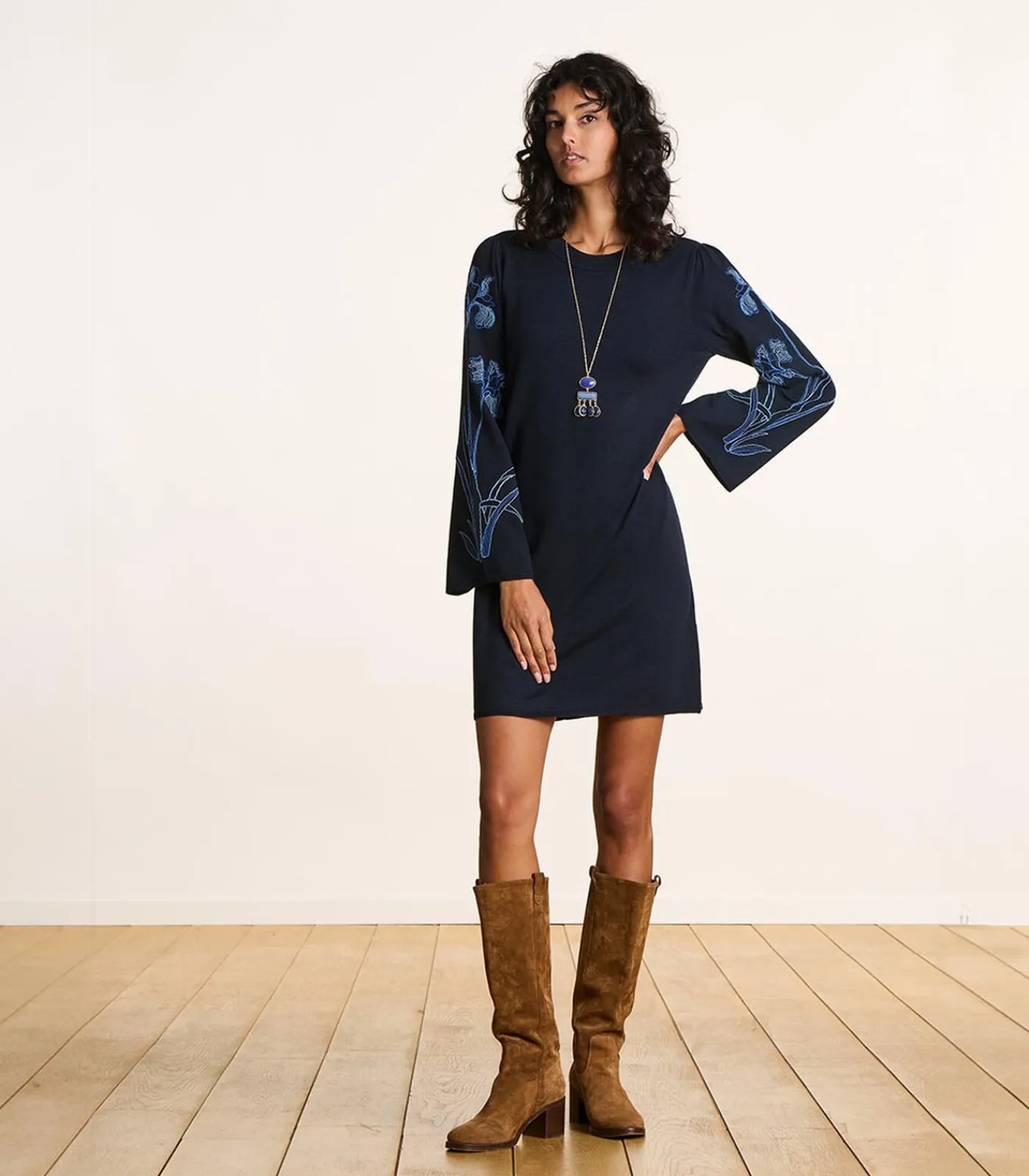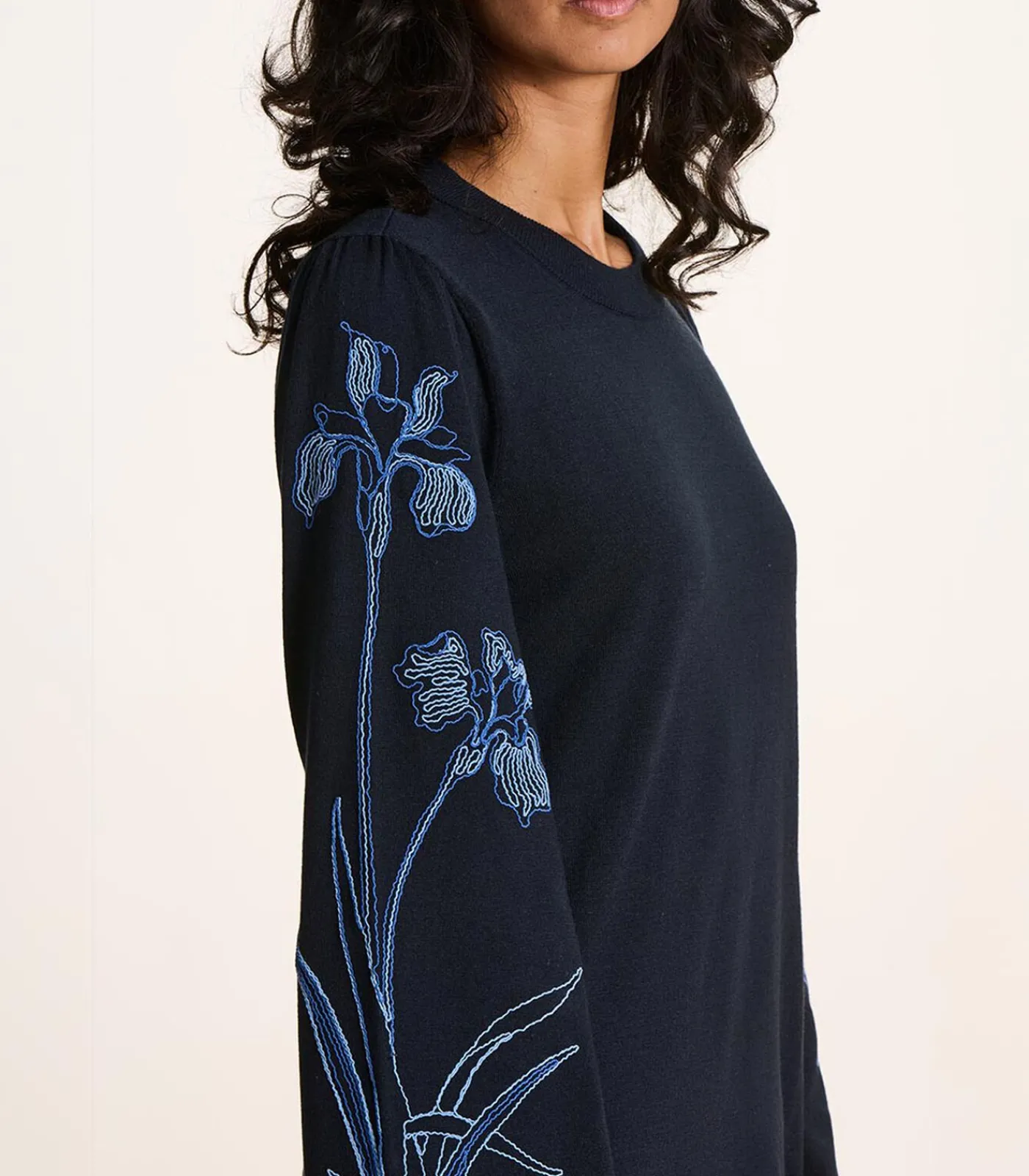 – Details met Cornely bloem borduursels op de mouwen