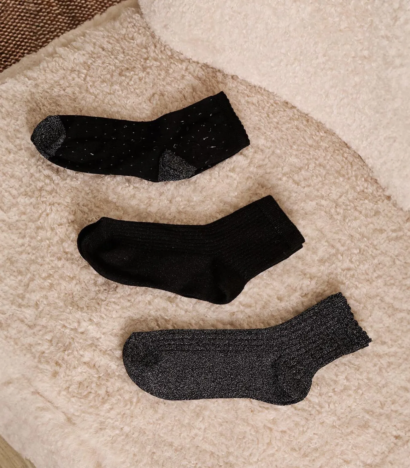 – Paar 3: effen lurex in ton–sur–ton kleurstelling