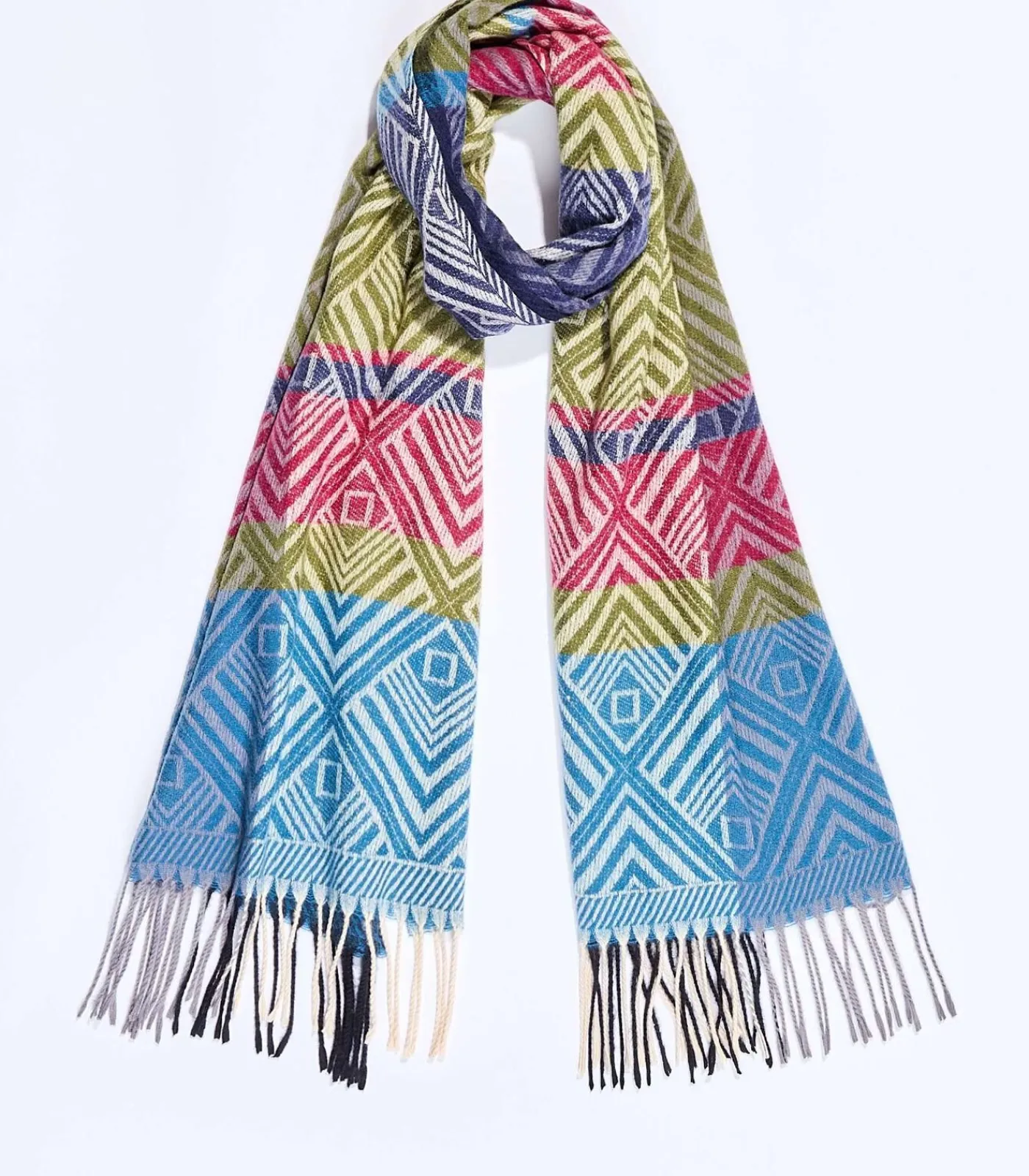 Zachte gebreide sjaal, ideaal om frisse dagen stijlvol door te komen. Het rechthoekige model en de afgewerkte gevlochten franjes geven een tijdloze charme. Een warm en kleurrijk accessoire dat uw outfits elegant complementeert. Productdetails: rechthoekige gebreide sjaal, afmetingen: 180 x 65 cm, afgewerkte gevlochten franjes.