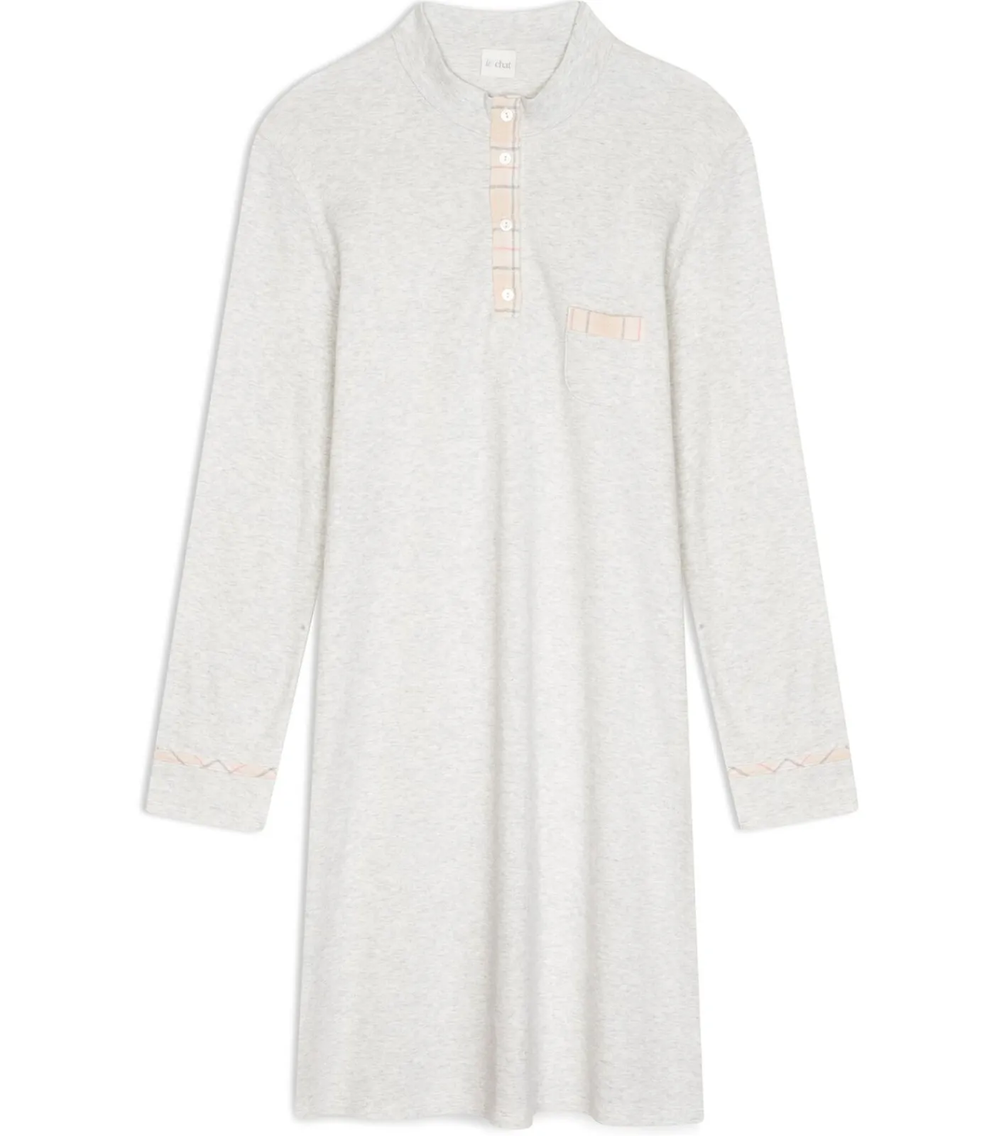 Hij valt op door zijn mooie tartandetails en zijn kleine officierskraagje, dat naast een zachte warmte rond de nek ook een modieuze touch geeft aan dit essentiële nachthemd.