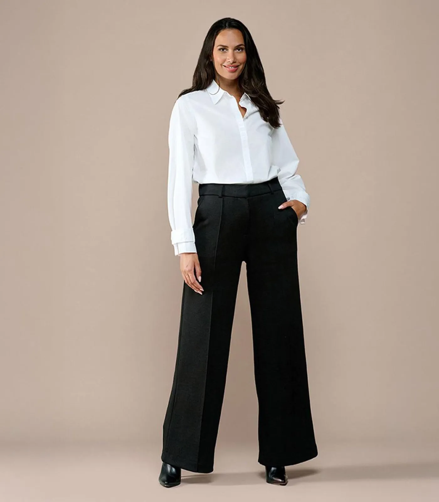 Til je dagelijkse outfits naar een hoger niveau met de Celia pantalon in zwart van Mart Visser. Deze elegante damespantalon is ontworpen om een verzorgde en stijlvolle uitstraling te combineren met optimaal draagcomfort. Het rechte model met subtiele pintuck aan de voorzijde verlengt het been optisch en creëert een slank silhouet, terwijl de aangesloten pasvorm op de heupen en de iets ruimere snit vanaf de knie zorgen voor een flatterend geheel. Dankzij de elastische tailleband aan de achterkant en de lichte stretch beweegt de broek soepel mee en blijft hij de hele dag comfortabel. Schuine steekzakken aan de voorkant voegen een praktisch detail toe zonder afbreuk te doen aan de elegantie. Het klassieke zwarte design maakt de pantalon een veelzijdige basis: combineer met de bijpassende zwarte blazer en een blouse voor een zakelijke look, of met een kleurrijke knitwear top voor een casual, moderne uitstraling.