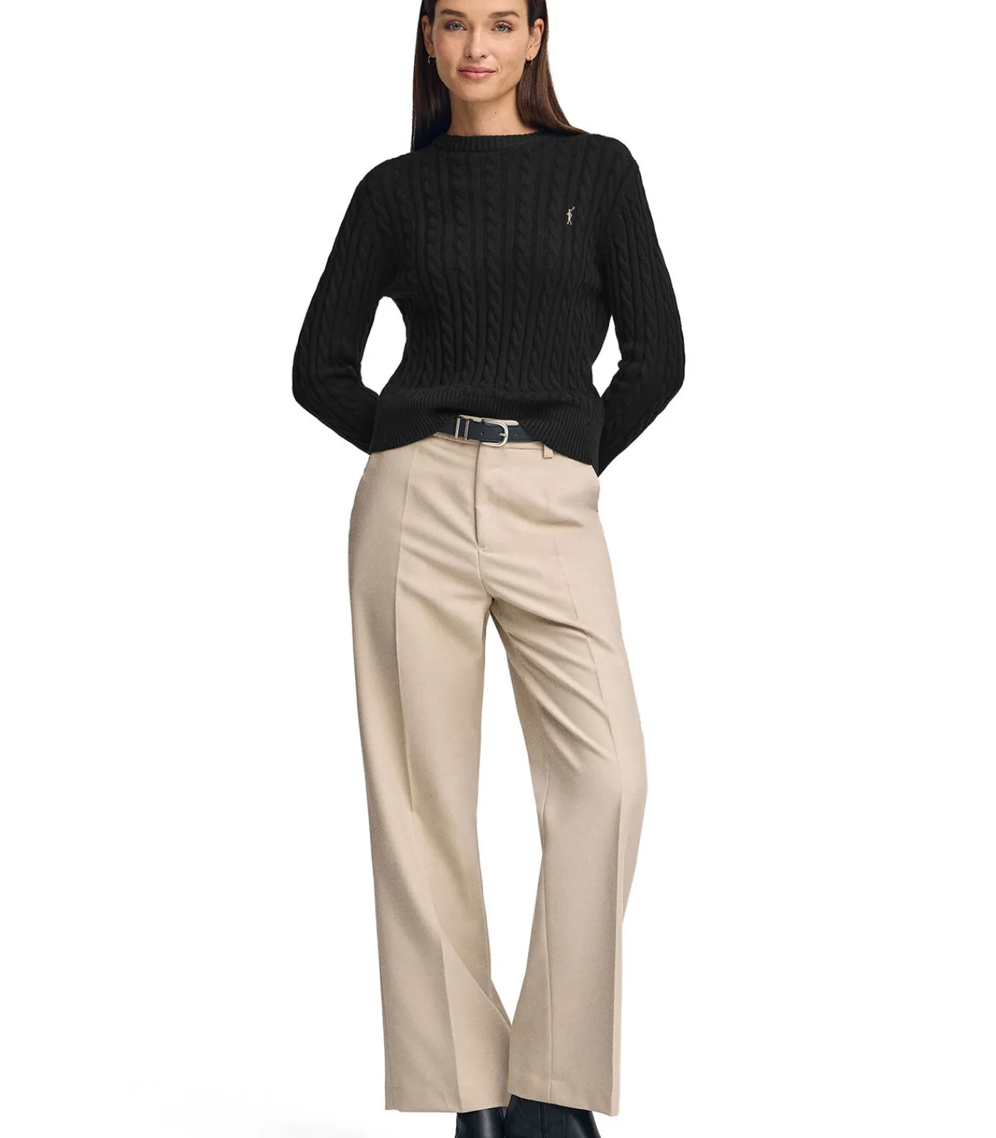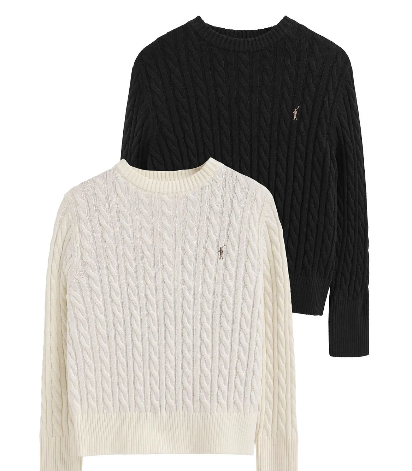 DAMES Polo Club Pack van twee truien van wolmix in zwart en gebroken wit met ronde hals en geborduurd Rigby Go-logo