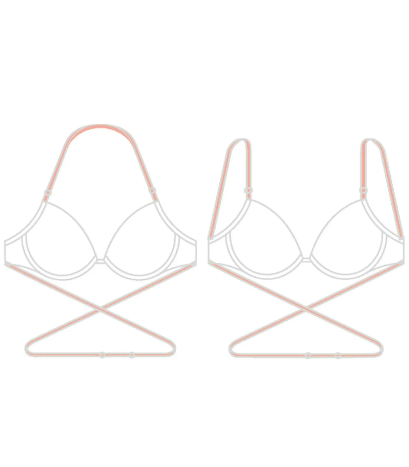 1 verstelbaar bh–bandje van 50 cm met haken, 2 verstelbare bh–bandjes van 40 cm met haken, 2 verstelbare bh–bandjes van 38 cm, één met haken en één met een haakloos lusje.[Set bandjes wordt apart verkocht. De bh die het model op de foto’s draagt is niet inbegrepen]Materialen:100% polyurethaan