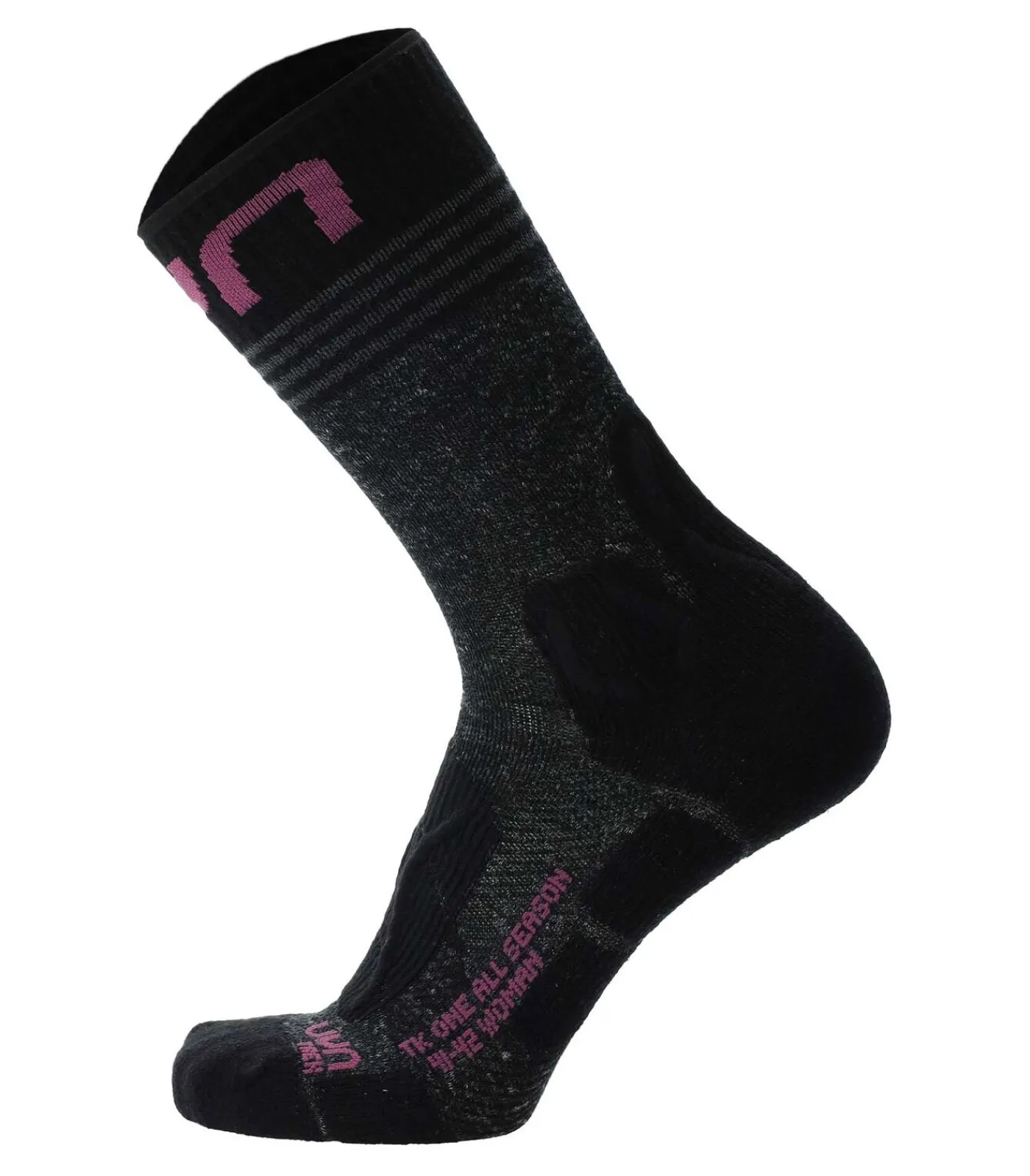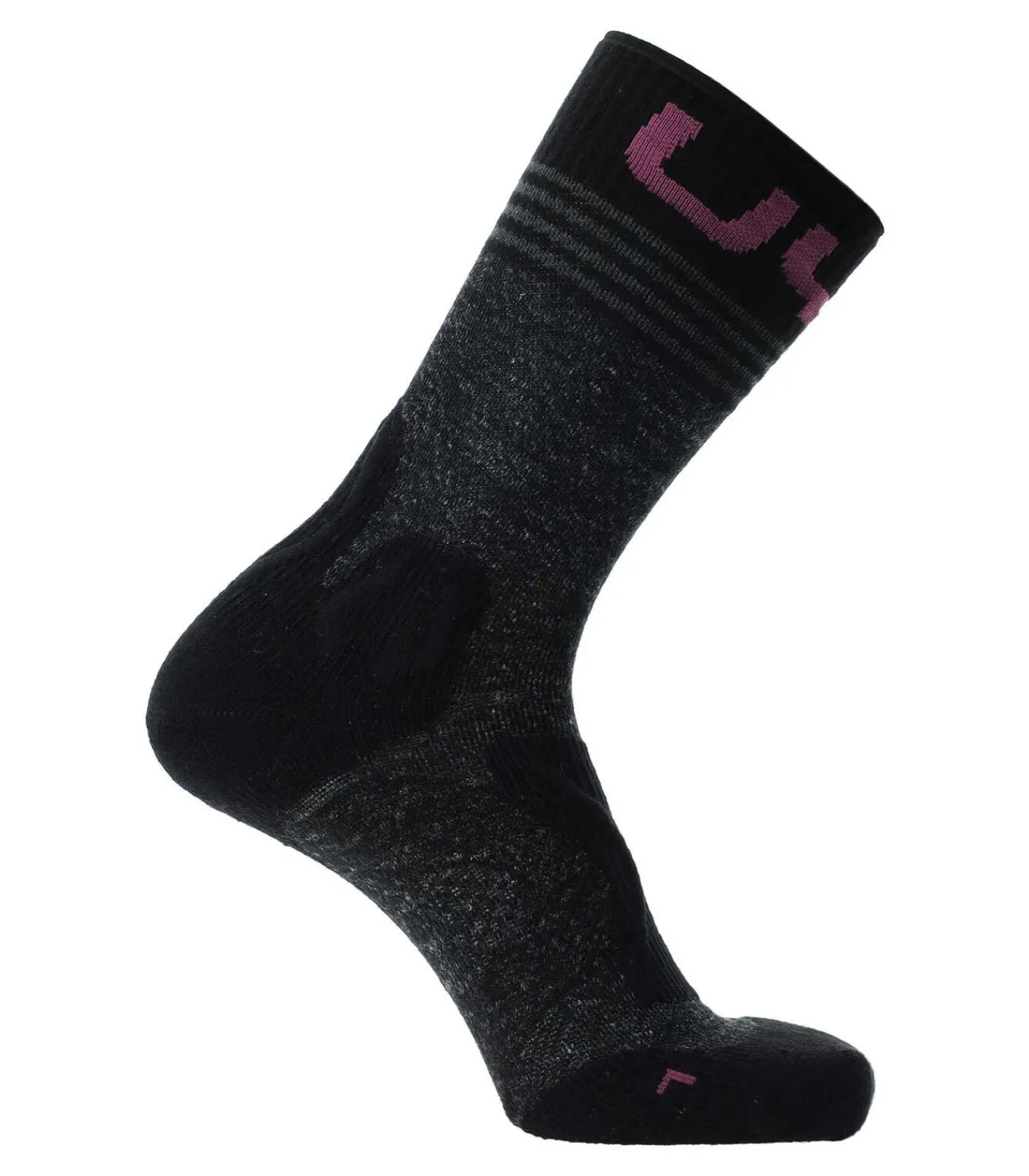 Sportieve damessokken van het merk UYN. Wandelsokken met plaatselijke compressie en asymmetrische enkelbescherming.