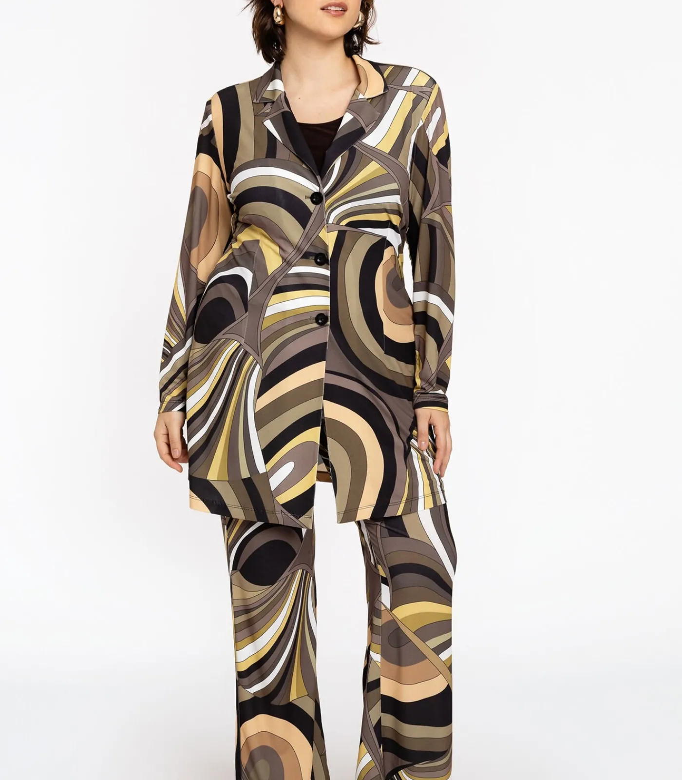 Maatindicatie: Plus–Size Kleding Mouwlengte: 63 cm in maat 42/44 Totale lengte: 93 cm in maat 42/44 Borstbreedte: 55 cm in maat 42/44 Het model is 177 cm lang en draagt maat 42/44