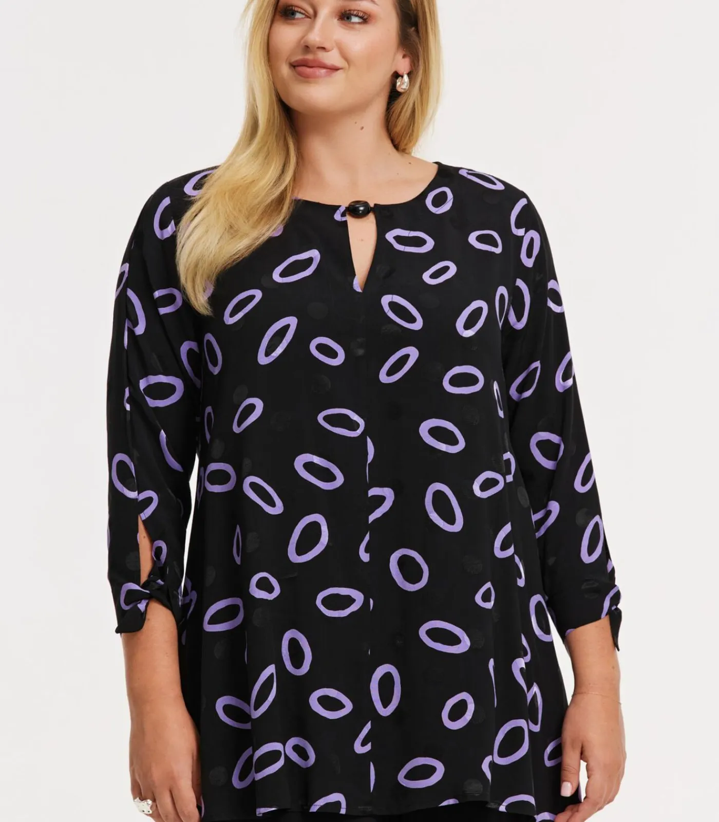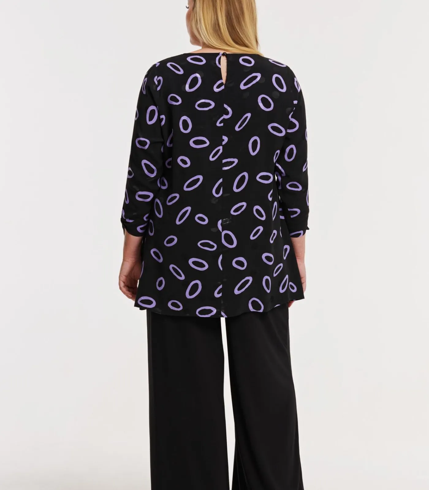 Maatindicatie: Plus–Size Kleding Mouwlengte: 52 cm in maat 42/44 Totale lengte: 83 cm in maat 42/44 Borstbreedte: 58 cm in maat 42/44 Het model is 177 cm lang en draagt maat 42/44