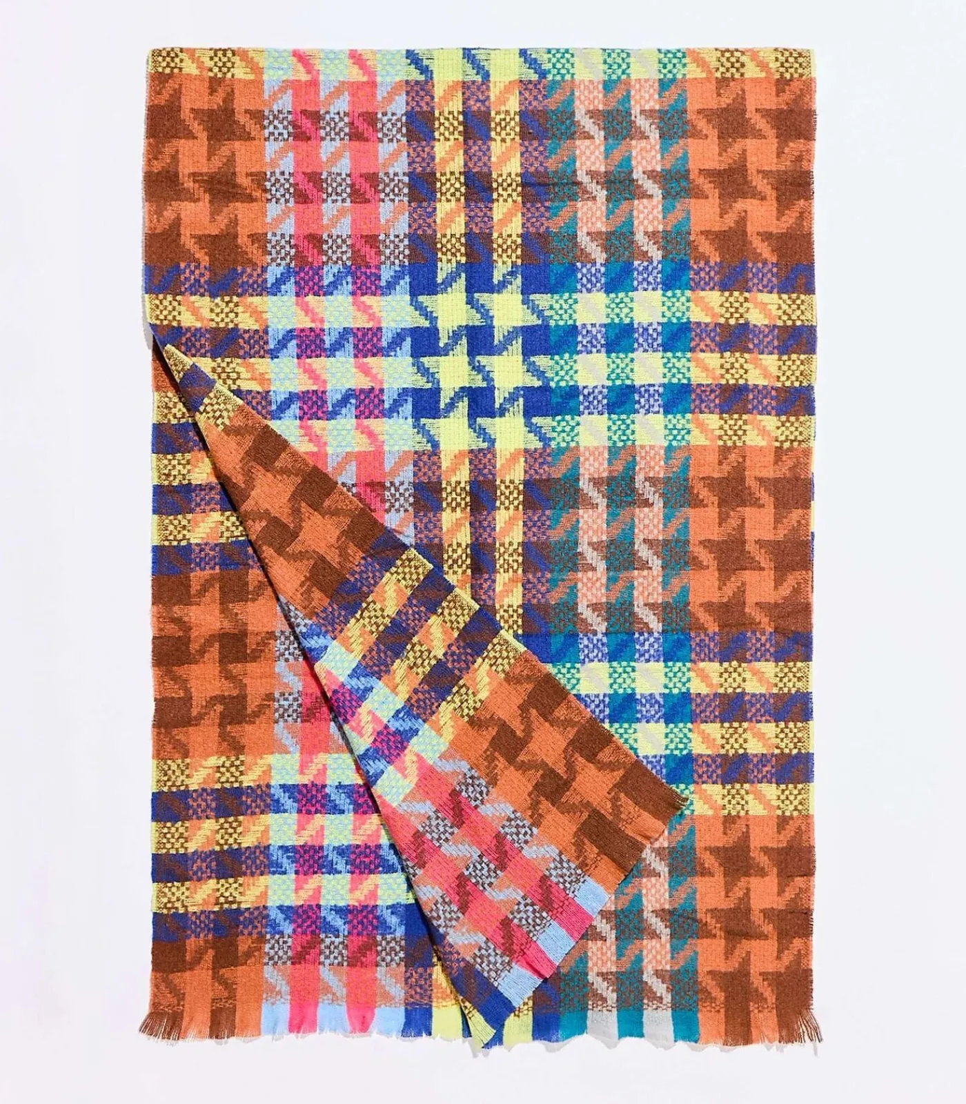 Zachte en kleurrijke sjaal met vernieuwd pied–de–poule motief, die een grafische en lichte touch aan uw winteroutfits geeft. Het royale rechthoekige formaat maakt veelzijdig dragen mogelijk: rond de hals, over de schouders als sjaal of op een casual manier geknoopt. Productdetails: rechthoekige bedrukte sjaal, afmetingen: 180 x 65 cm.