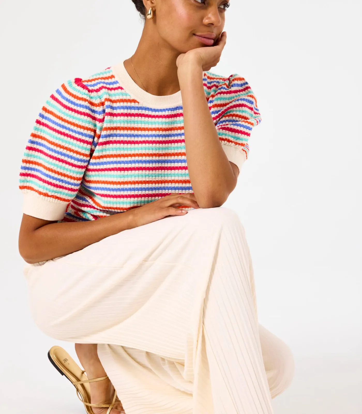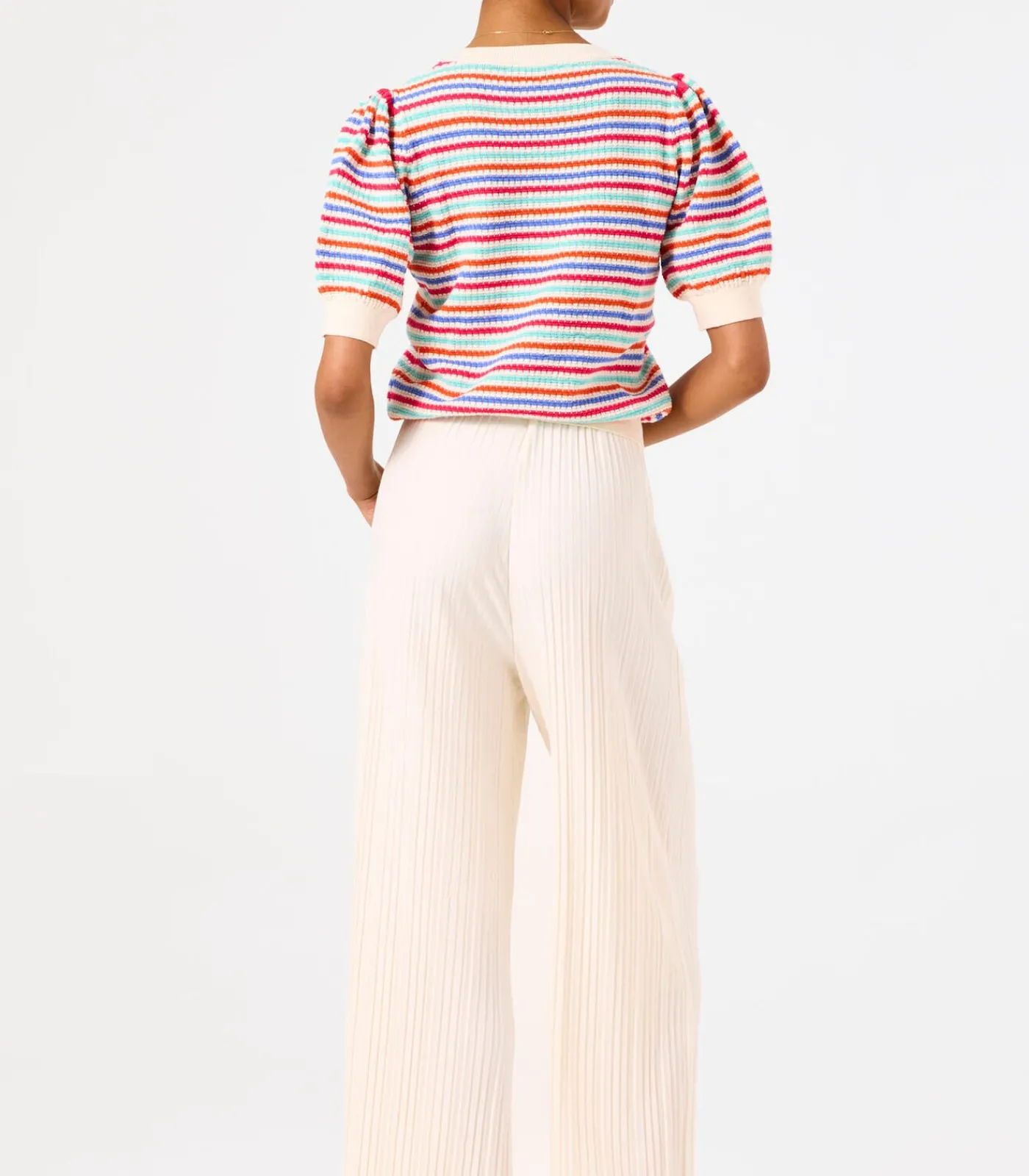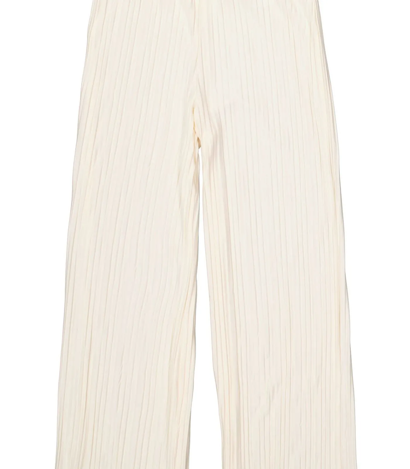 Plissé broek met straight leg. Een fijne basic als deze mag niet ontbreken in jouw garderobe! Deze broek heeft een high waist, een elastische tailleband en een regular fit. Dit item is gemaakt van 65% recycled polyster, 32% viscose en 3% elastaan.