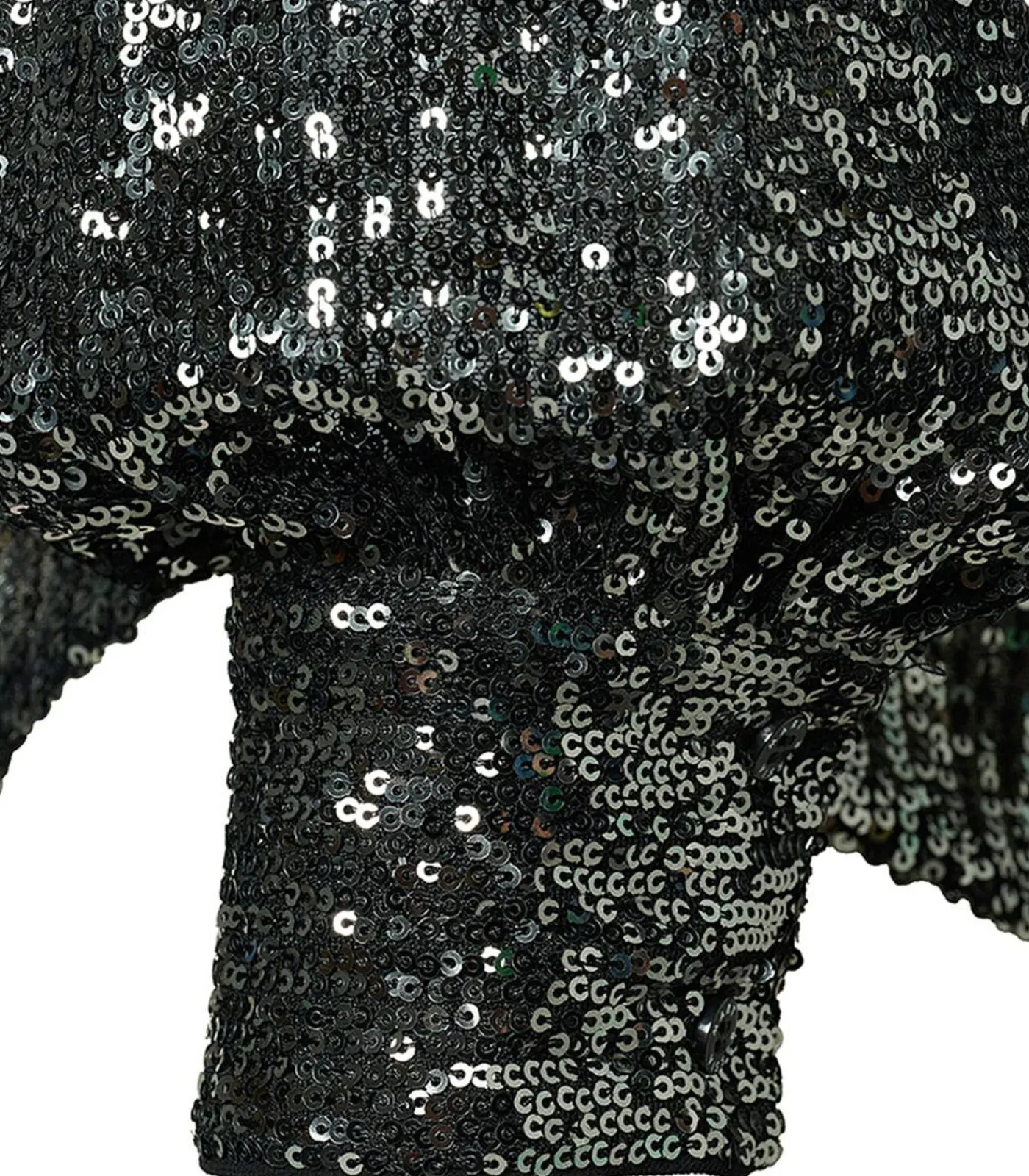 Straal tijdens de feestdagen met de Cerise pailletten blouse in een mix van grijs– en groentinten. De blouse is rijkelijk versierd met fonkelende pailletten op een zwarte ondergrond, wat een luxueus en subtiel glanzend effect geeft. De klassieke reverskraag en lange mouwen met licht pofeffect bij de polsen zorgen voor een verfijnde, vrouwelijke uitstraling. De blinde knoopsluiting aan de voorzijde houdt het ontwerp strak en elegant. Het rechte, vloeiend vallende silhouet tot op de heup biedt zowel comfort als stijl. Combineer de blouse met de bijpassende paillettenbroek voor een feestelijke statement–look, of draag hem met een zwarte pantalon of rok voor een chique en verfijnde outfit. Fashiontip: wie van glans houdt, kan de blouse aanvullen met andere items in dezelfde paillettenstof, zoals jurk, tuniek of rok, voor een complete, feestelijke look.