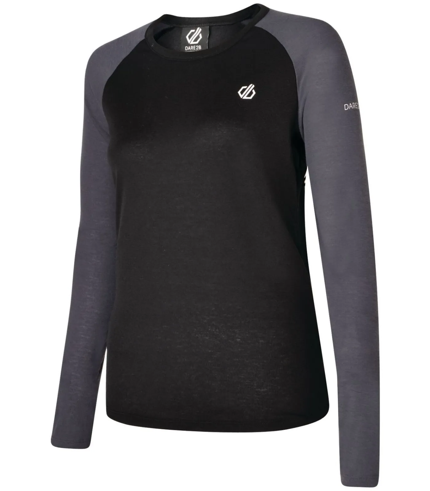 Deze basislagenset van Dare 2B is gemaakt van 93% gerecycled polyester en 7% elastaan. De geborstelde, zacht aanvoelende stof heeft een tweekleurig ontwerp met contrasterende stiksels en het Dare 2B logo. De top met lange mouwen heeft een ronde hals en een enkellange legging met elastische tailleband. Beide stukken zijn ontworpen met antibacteriële, sneldrogende en warmteregulerende eigenschappen om de drager comfortabel te houden. Deze Exchange III collectie biedt vochtafvoerende prestaties door de Q–Wic Plus stoftechnologie.