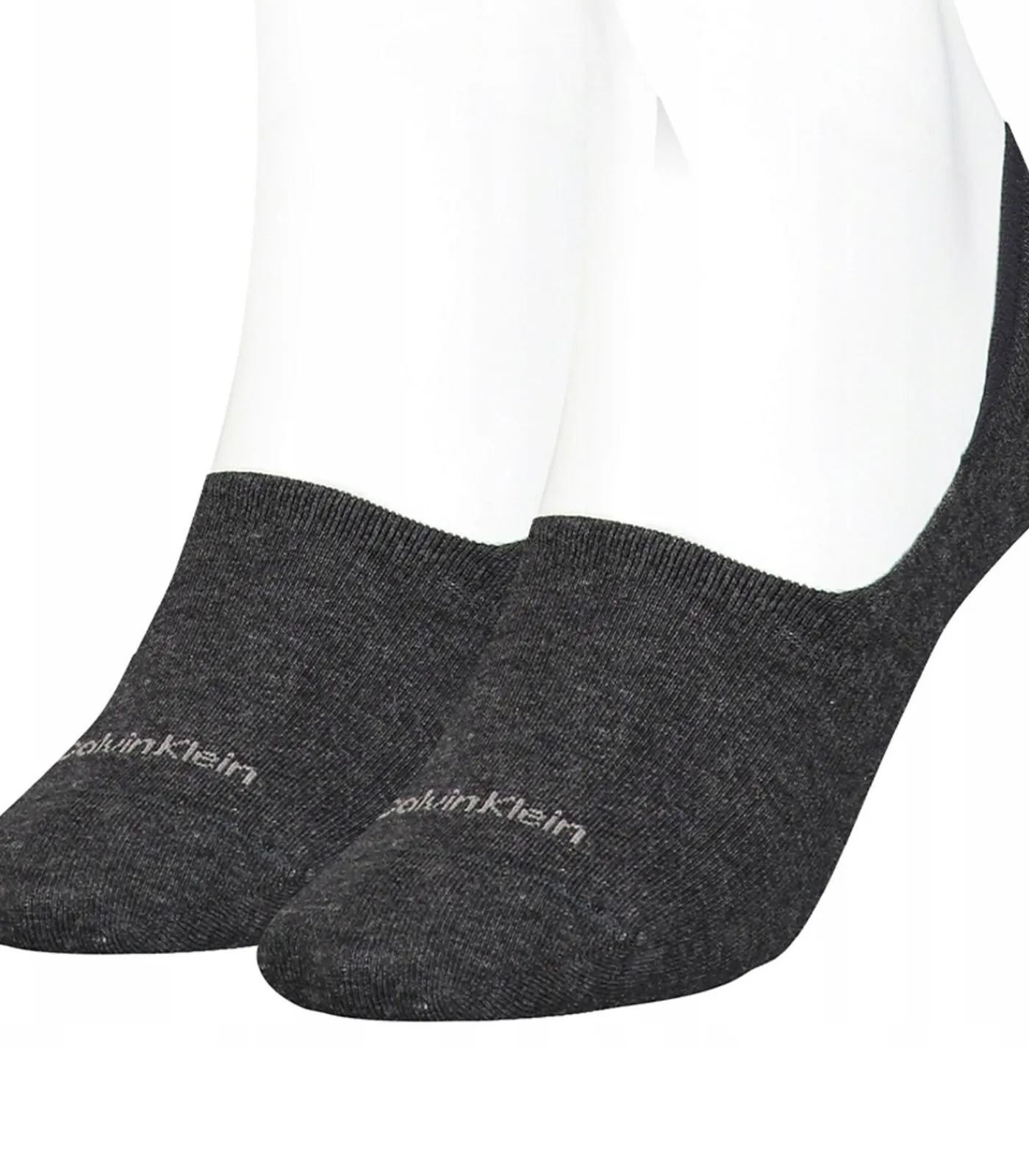 Calvin Klein Footie–sokken in een grijs kleur. Deze sokken bestaan uit 68% katoen, 30% polyamide en 2% elastaan. Het garen is rekend en de stof is slipbestendig en zacht. Het ontwerp bevat het logo van Calvin Klein en is eenvoudig. De sokken hebben een mid cut snijding en zijn uitgerust met silicone hakken.