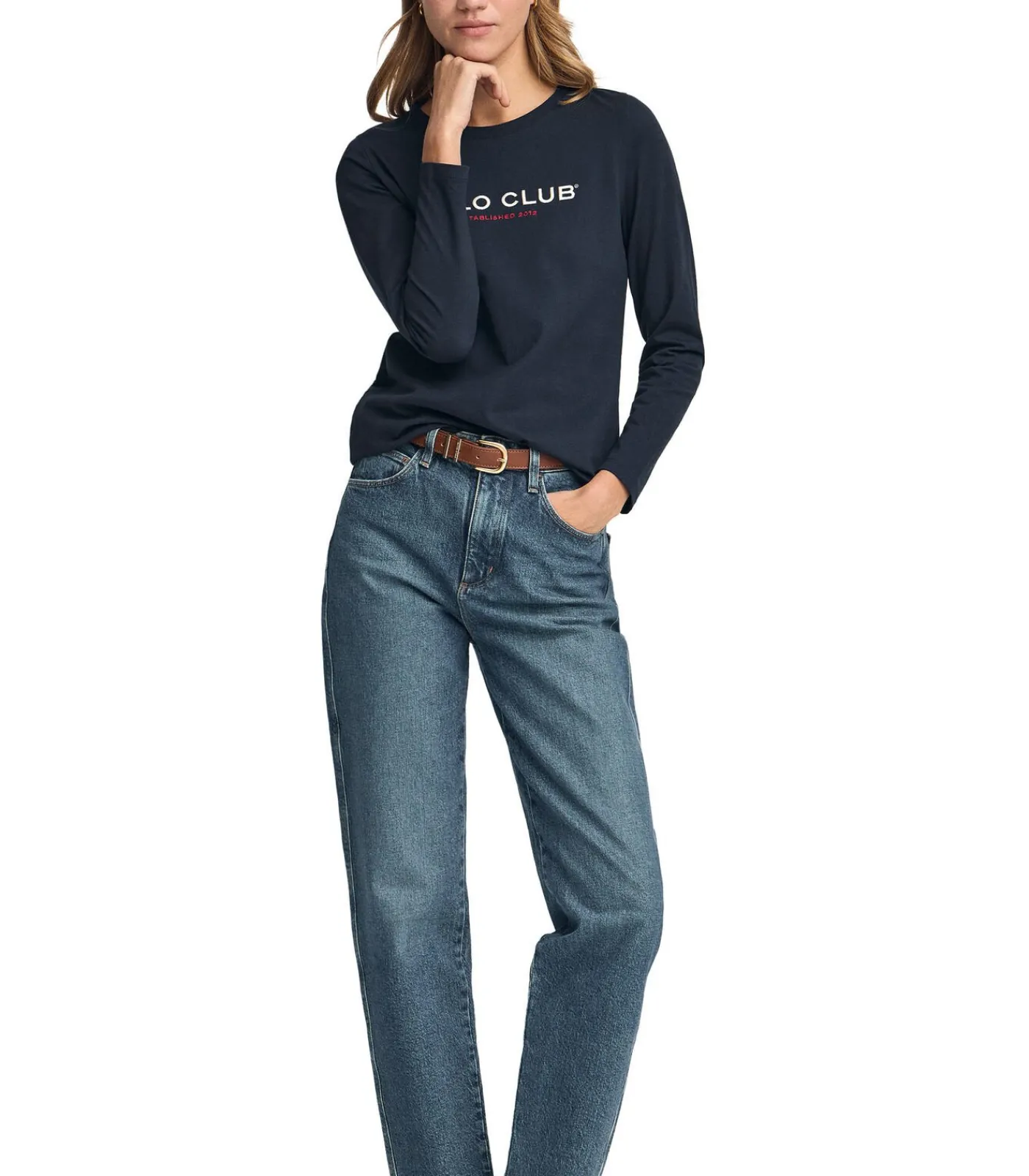 T–shirt voor dames met lange mouwen, getailleerde pasvorm en ronde hals. Gemaakt van zacht katoen – een ideale basic voor een casual look met een stijlvolle touch.