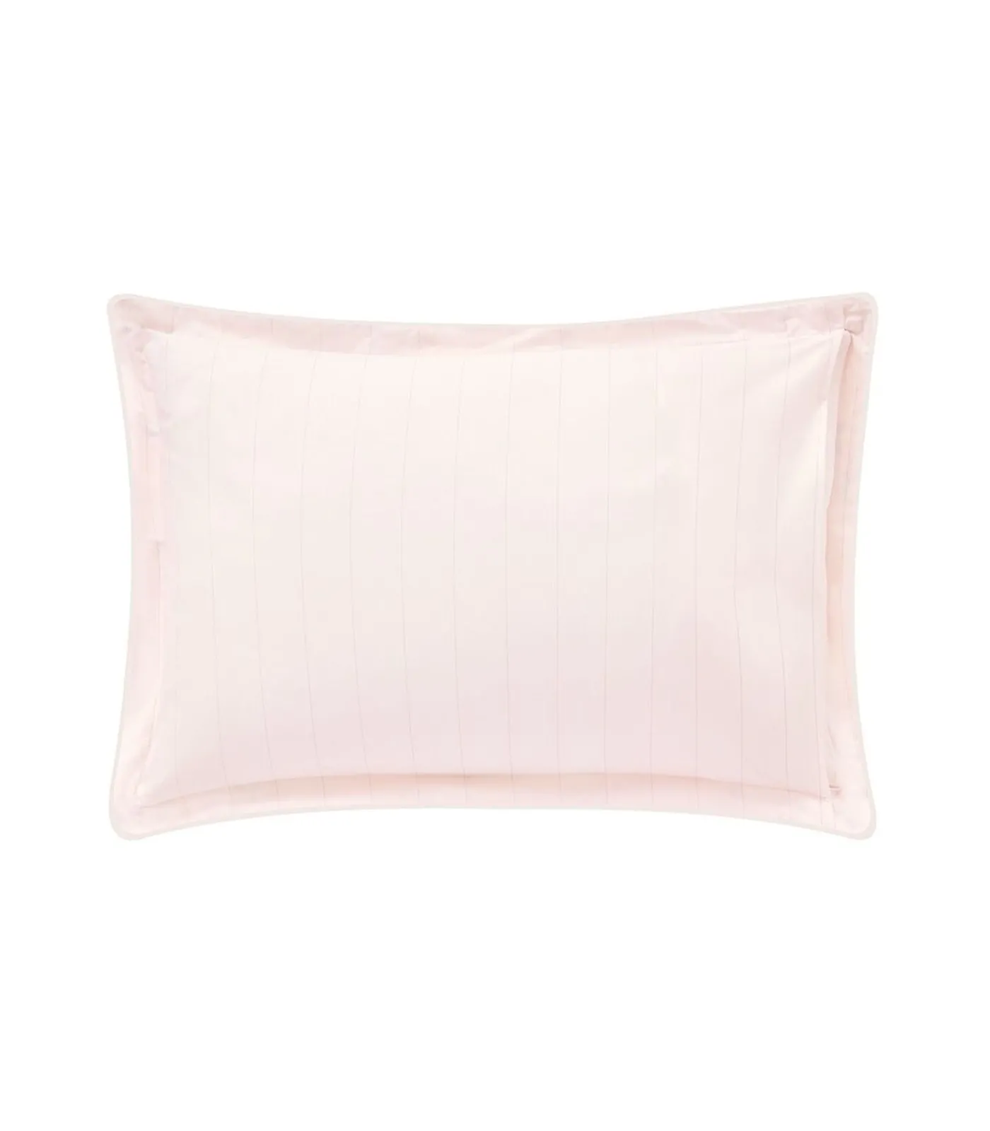 Print van kamperfoelie bloemen op poederroze achtergrondPrint van fijne verticale strepen op poederroze achtergrond
