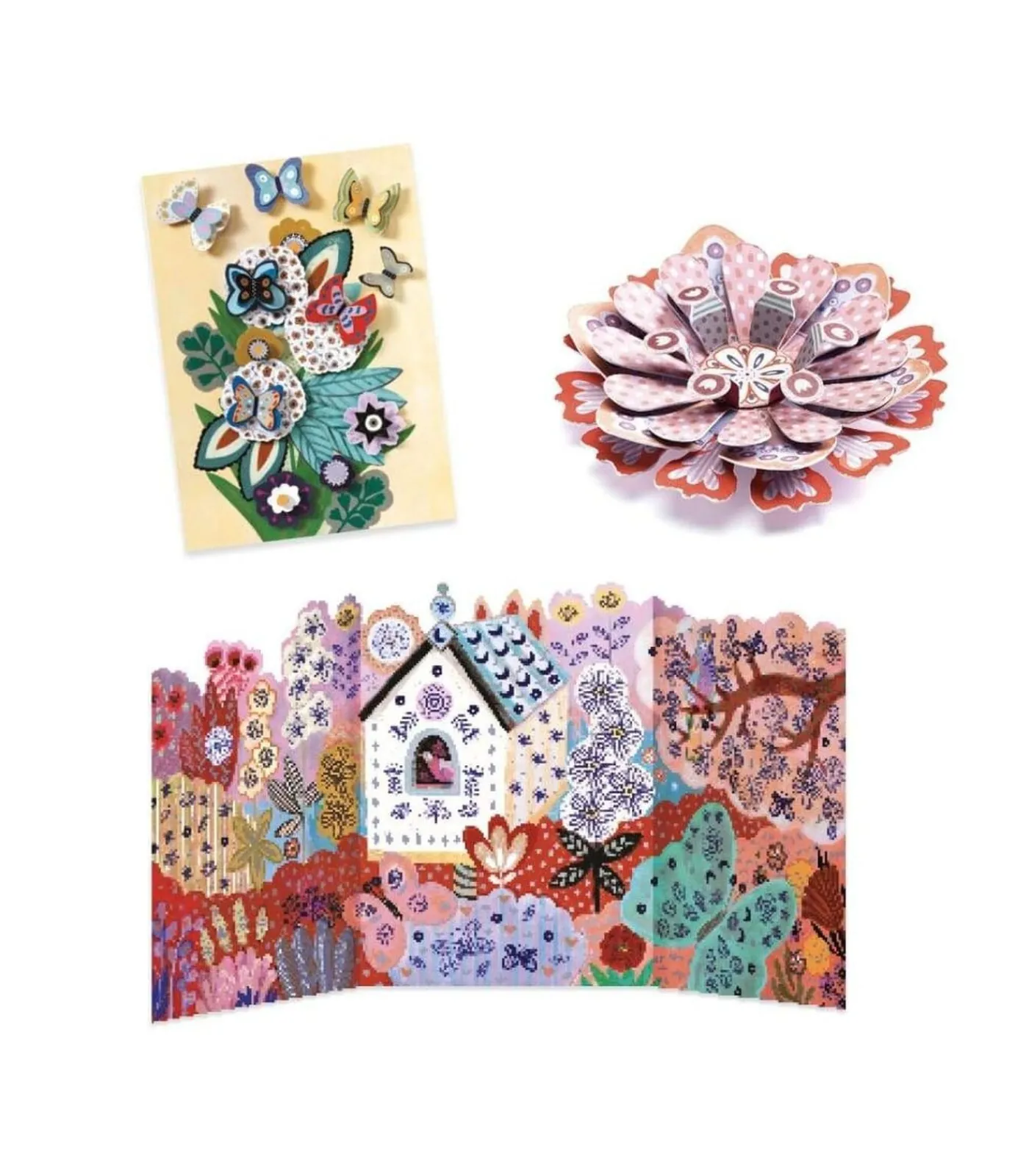 Dit is een complete set met 6 creatieve activiteiten en vele projecten rond het thema bloemen: schilderen, tekenen, collages maken, vouwen, kraskaarten krassen en 3D–taferelen maken. Voor ieder wat wils! Urenlange manuele activiteiten om verschillende creatieve technieken te ontdekken en je onder te dompelen in een bloementuin. Alle accessoires zijn aanwezig, zodat de kinderen elke activiteit kunnen uitvoeren volgens hun eigen wensen en nieuwsgierigheid. Het boekje waarin elke activiteit stap voor stap wordt beschreven, helpt de kinderen bij het creatieve proces.Inhoud: Schilderen: 1 schilderkarton (21 x 29,7 cm), 1 palet met 8 tabletten plakkaatverf en het bijbehorende penseel. Slinger om te krassen en ineen te zetten: 8 kraskaarten (4 bloemen + 4 vlinders), 1 katoenen streng, 1 houten pen. Bloemen knutselset: 6 vellen papier in de vorm van een bloemenkroon, aan beide zijden bedrukt om los te maken en in elkaar te zetten, 1 vel dubbelzijdige stickers. Collages: 1 kleurplaat (21 x 29,7 cm), dubbelzijdige tape, 4 vellen glittermateriaal. Tekenen: 1 grote kleurplaat (63 x 29 cm), 13 foamkussens, 1 blauw inktkussen, 1 zilver metallic gelpen. 3D–taferelen: 2 kleurplaten (15 x 21 cm), 2 vellen van voorgesneden vormen, dubbelzijdige stickers. 1 stap–voor–stap instructieboekje in kleur.Veel projecten voor uren plezier!6 activiteiten om te ontdekken: schilderen, tekenen, collages maken, kraskaarten krassen, vouwen, 3D–tekeningen maken.Alle materialen zijn inbegrepen.1 instructieboekje met een stap–voor–stap beschrijving van elke activiteit.Gemaakt van FSC®–gecertificeerd papier en karton.Het merk Djeco is een familiebedrijf uit Frankrijk, ze hechten veel waarde aan de kwaliteit van hun merk. Djeco artikelen hebben prachtige designs en zijn daarom altijd een mooi cadeau om te geven!