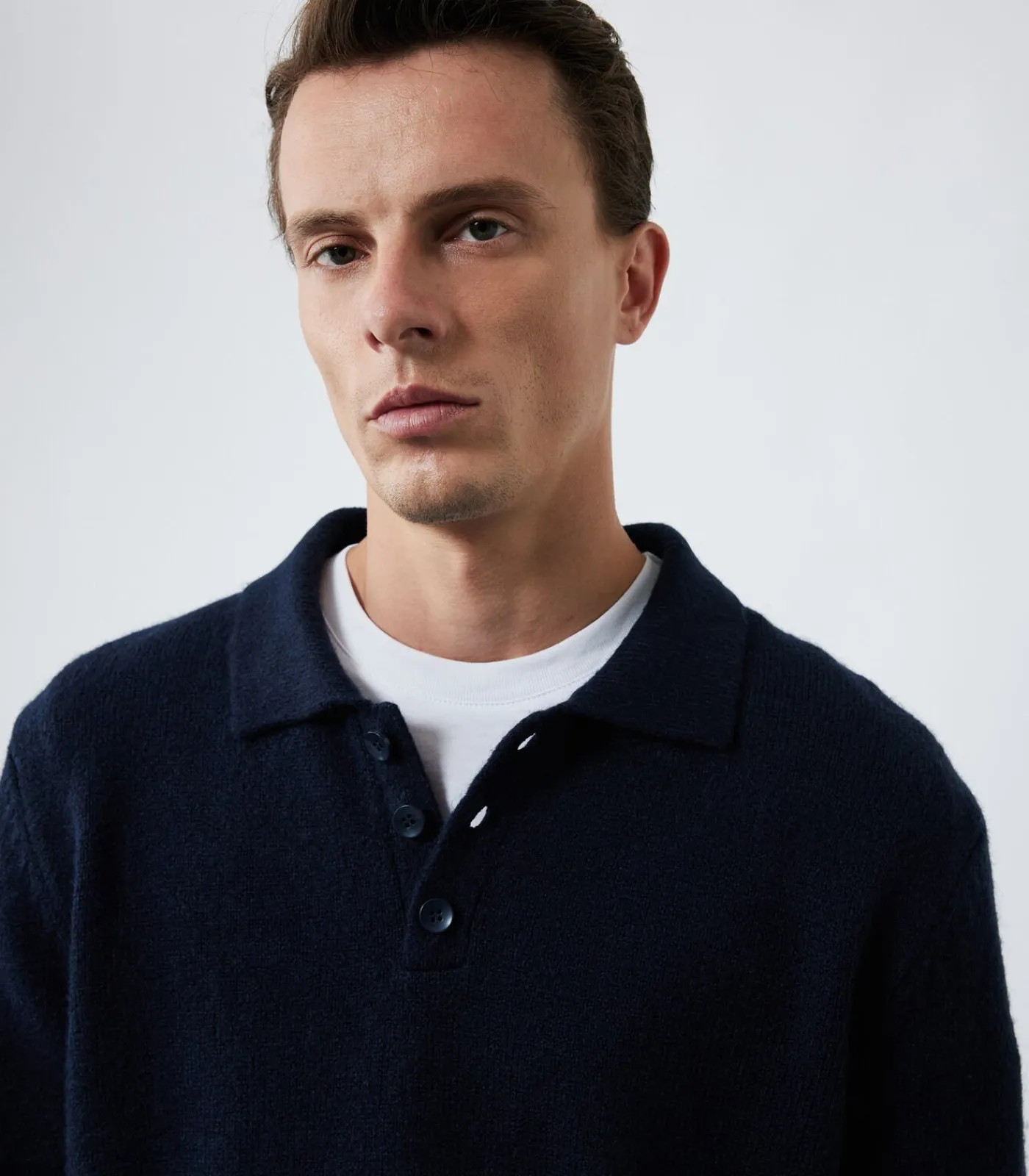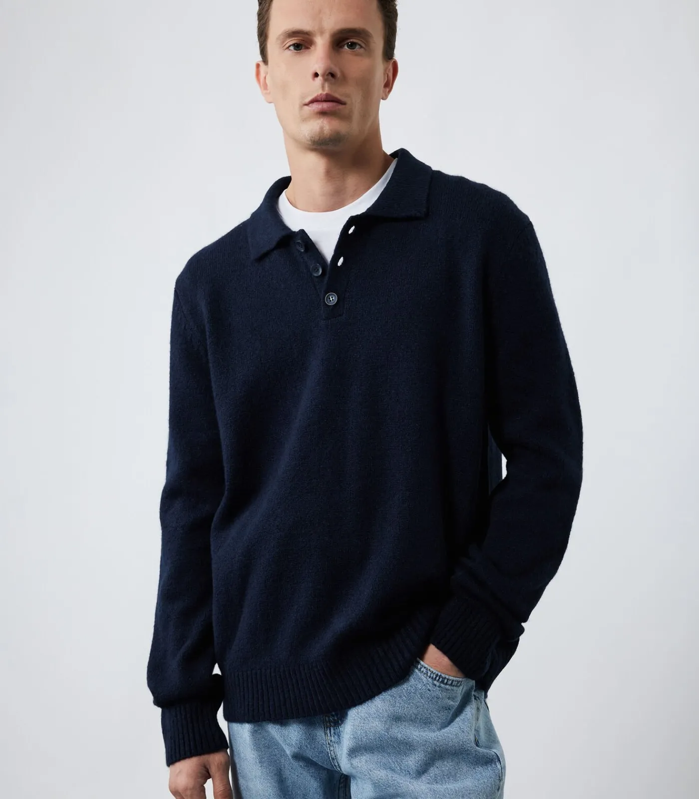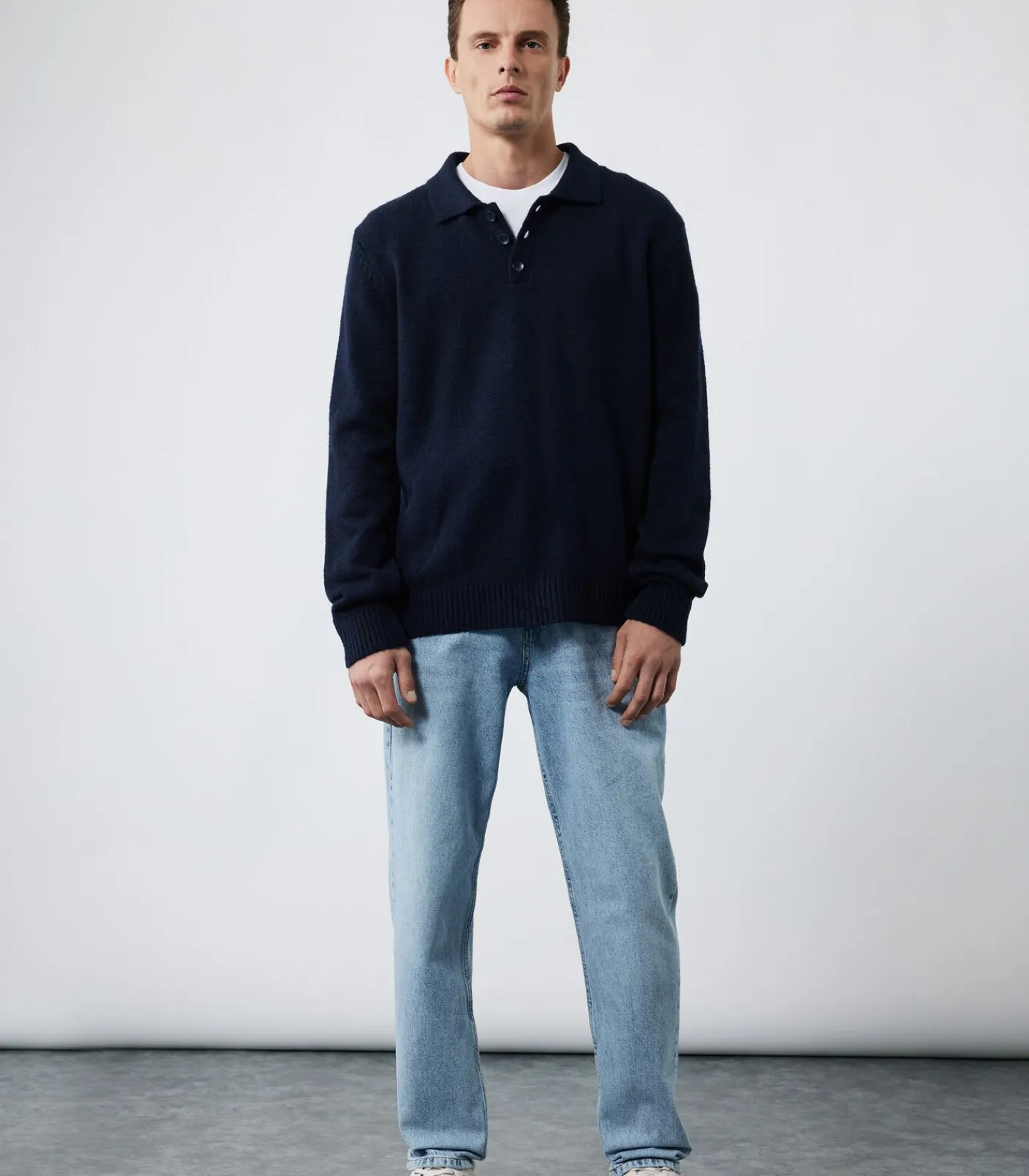 Trui met lange mouwen, knoopsluiting en polo–kraag.