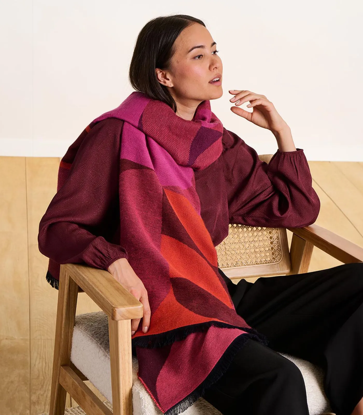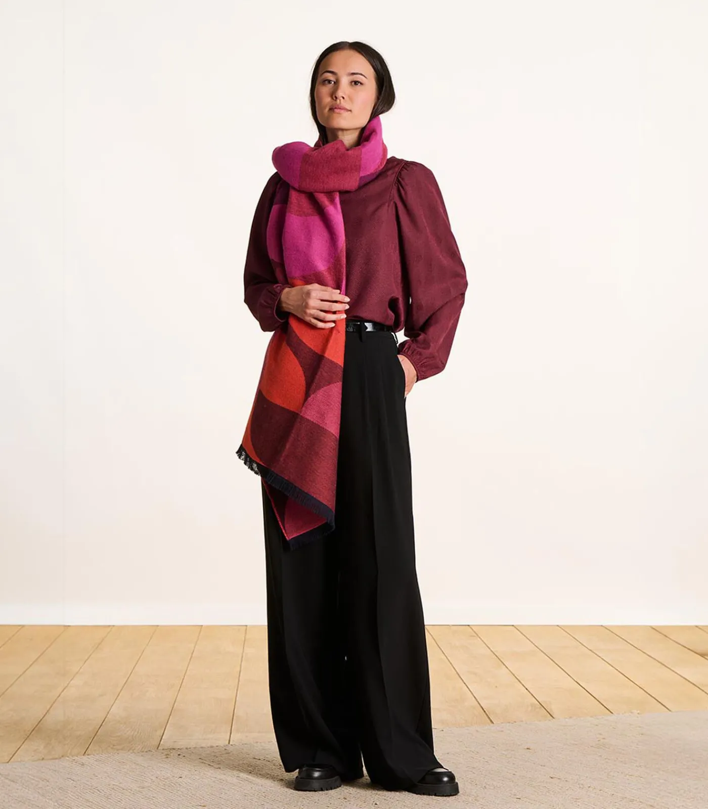 Gedessineerde rode sjaal van biologisch katoen DAMES Sjaals