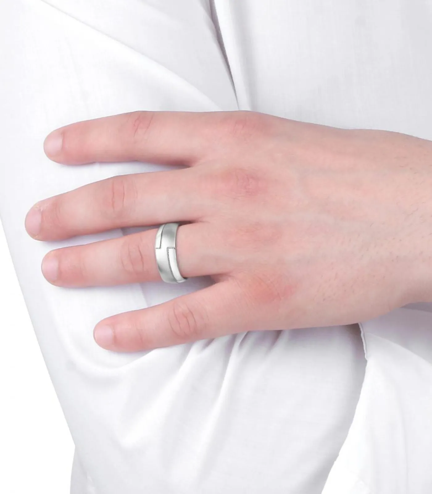 Sector No Limits SACX10025 herenring, ROW Collectie, maat 25, in staal. Ook verkrijgbaar in de maten 19, 21, 23. Sectorjuwelen voor heren combineren klassieke materialen als leer en staal met een sportief en modern design, verrijkt met bijzondere details. Essentieel en modern design, met een korrelig en dynamisch karakter, om iemands persoonlijkheid uit te drukken met unieke details.